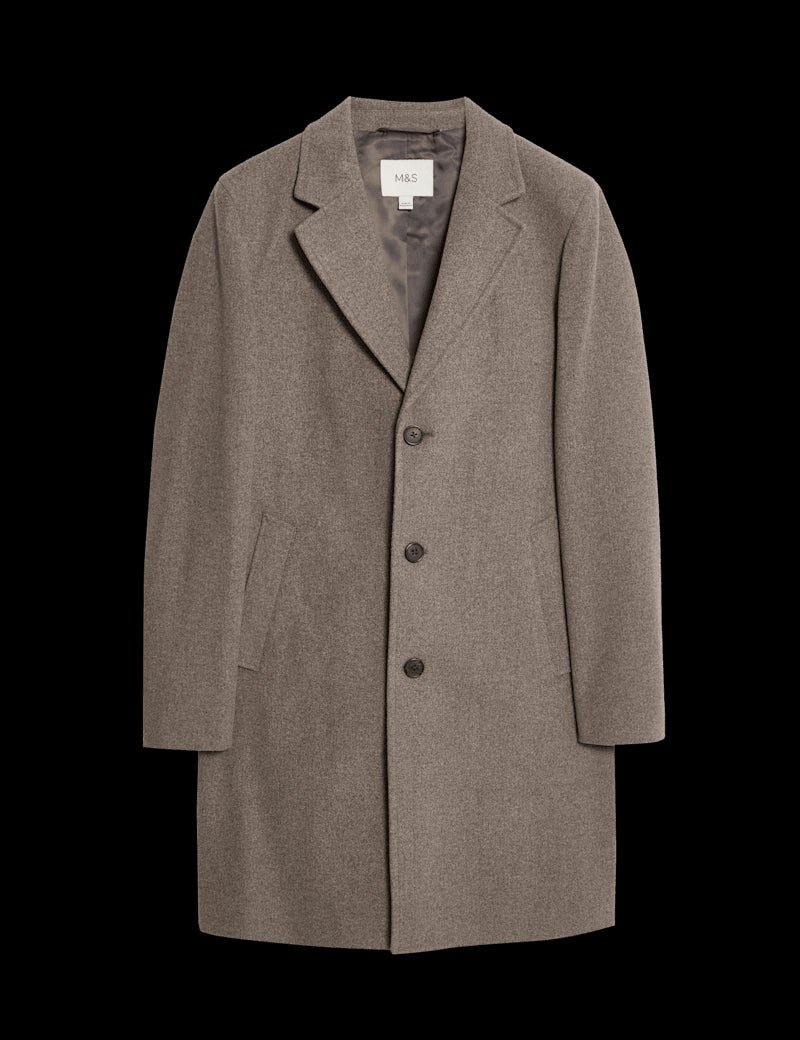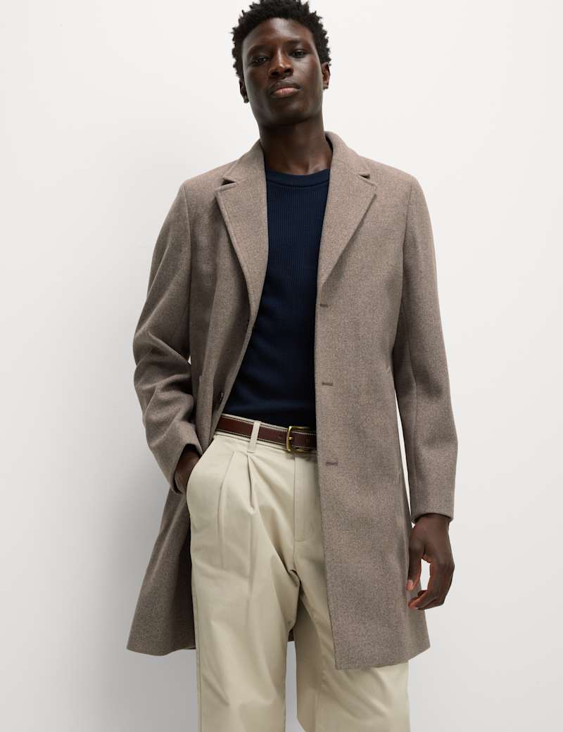 This overcoat is crafted from smooth and durable fabric with added stretch for easy movement. It fastens with three buttons and features a smart revere collar. Two patch pockets keep your essentials handy, while the lining offers a neat finish.