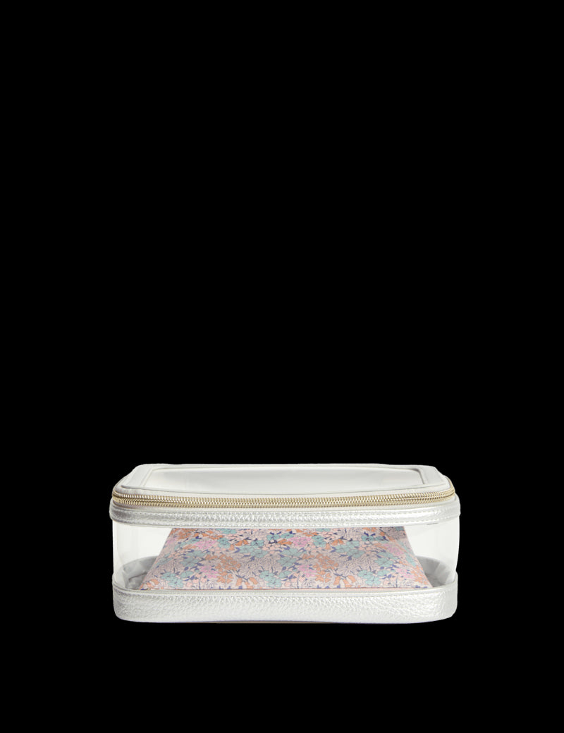 Get organised on the go with this travel toiletry bag duo. The set features two versatile bags that can be used separately or together for ultimate convenience. One bag features a transparent design, silver trim and a gold zip pull, while the smaller pouch has a pretty floral print.