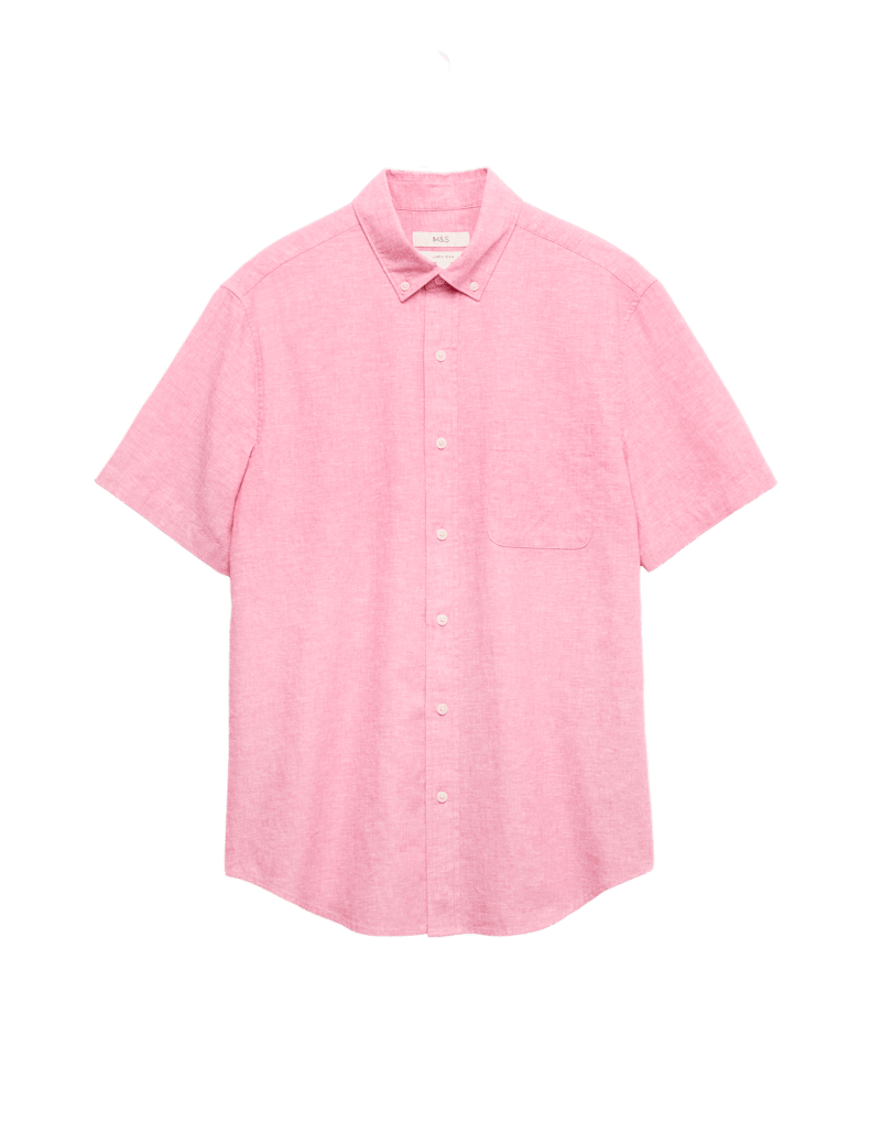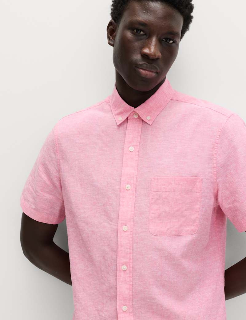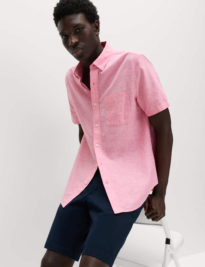 Stay cool in style with this short-sleeved shirt, which is made from durable linen and soft and breathable cotton. It's cut to a regular fit for comfort. The smart button-down collar complements the neat button-through fastening.