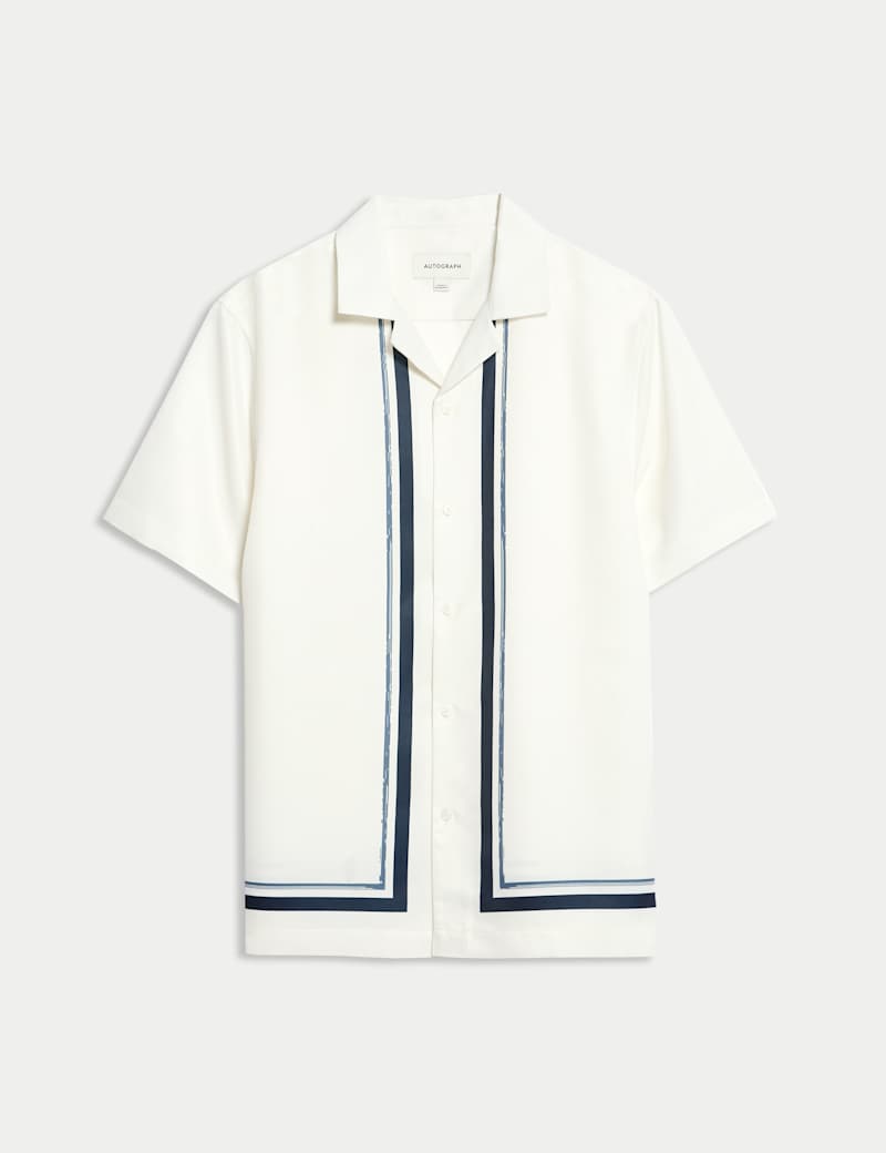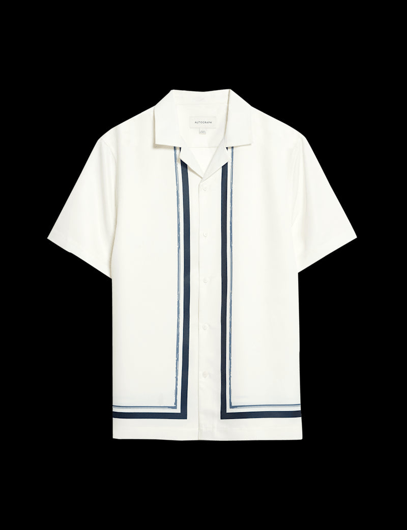 This Autograph shirt is crafted from smooth, drapey fabric for an effortlessly smart look. It's cut to a comfortable regular fit, with a stylish Cuban collar and neat button fastenings. The understated border print adds a refined touch.