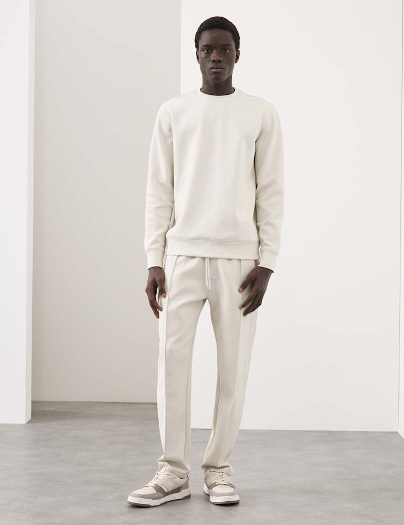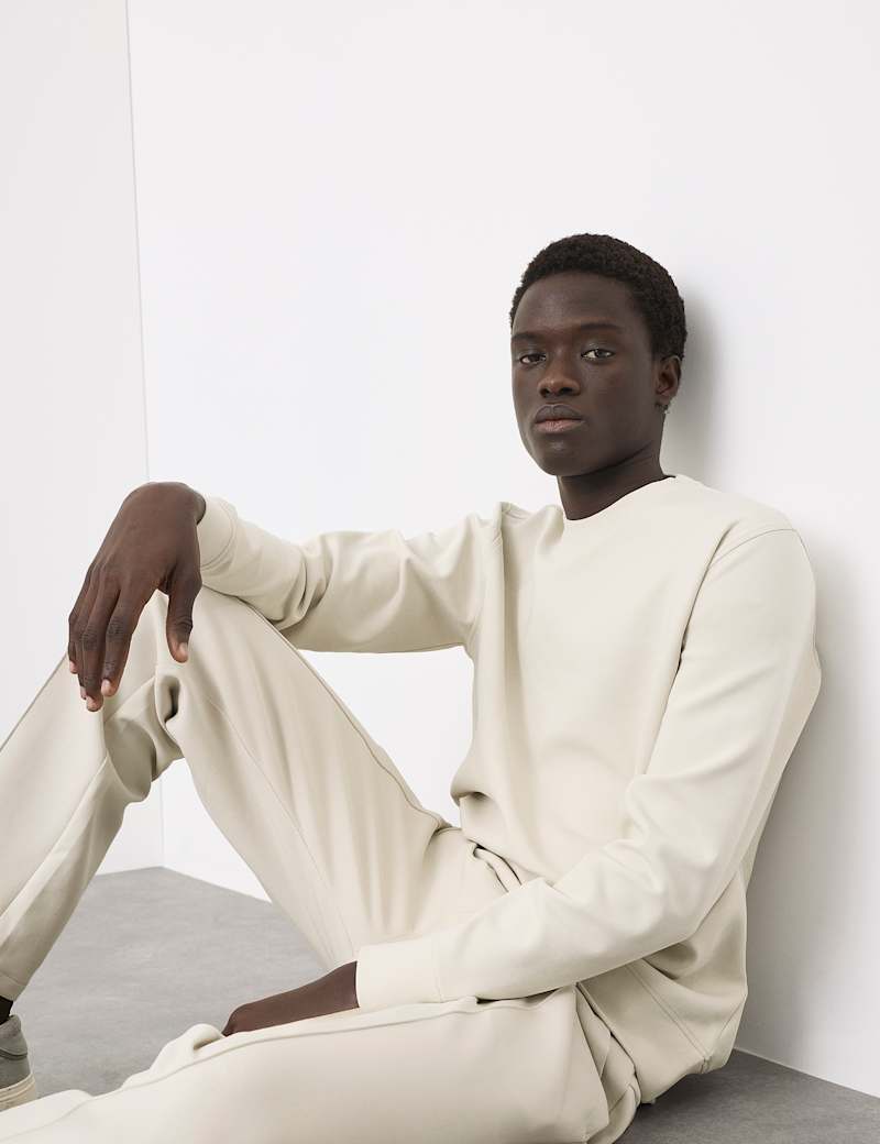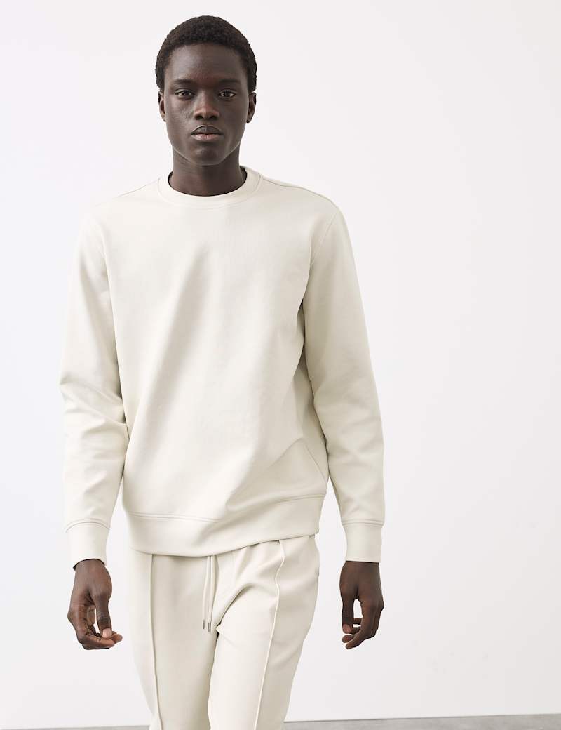 This understated sweatshirt offers casual style with contemporary appeal. Cut to a regular fit with a classic crew neck and long sleeves, it provides everyday versatility. The comfortable fabric includes stretch for day-long comfort, while smart interlock detailing at the hem and cuffs adds finishing touches.
