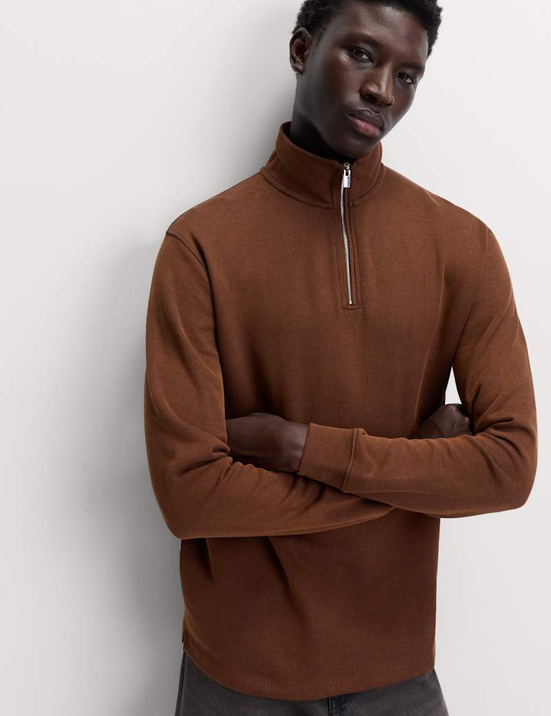 This soft cotton-rich sweatshirt is made from double-knit ribbed fabric for a subtly textured look and feel. Regular fit. Half-zip fastening for easy on-off. Funnel neck for extra warmth and dual styling options.M&S Collection: easy-to-wear wardrobe staples that combine classic and contemporary styles.