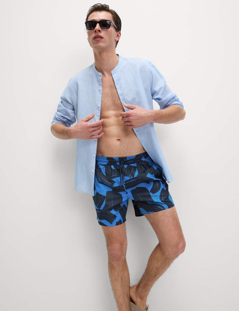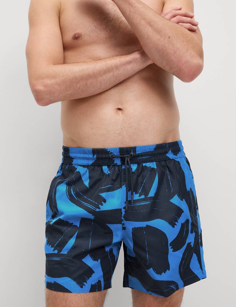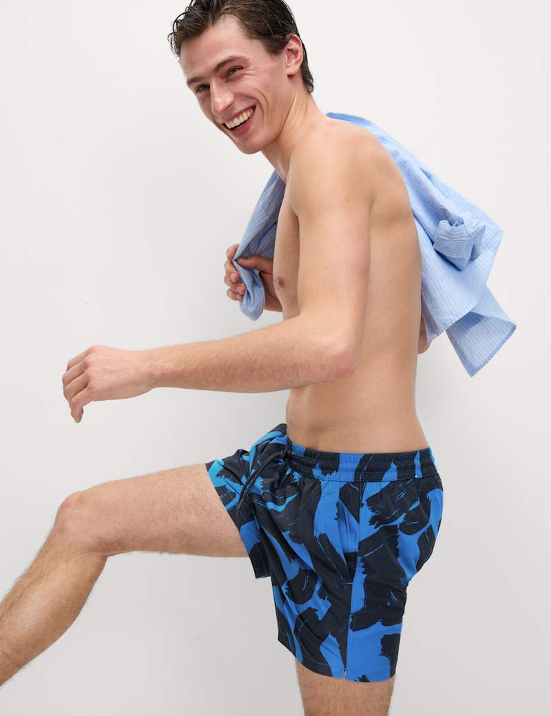 Make an instant splash in the pool with these colourful printed swim shorts. Secure drawstring waist ensures they stay up, in and out of the water. The quick-dry fabric means they€™re ready to wear again in next-to-no time. Side pockets are perfect for keeping your essentials handy.