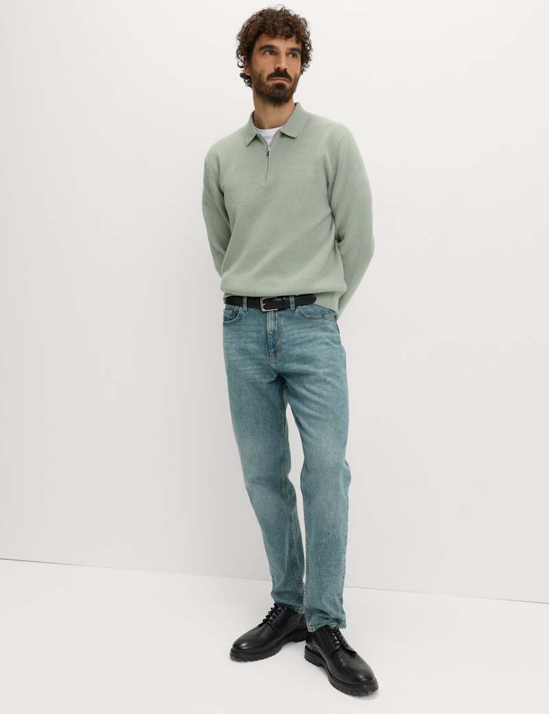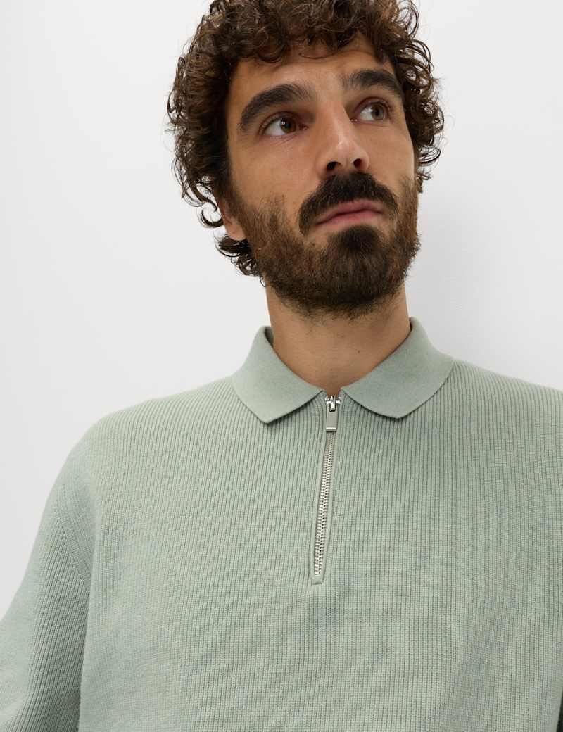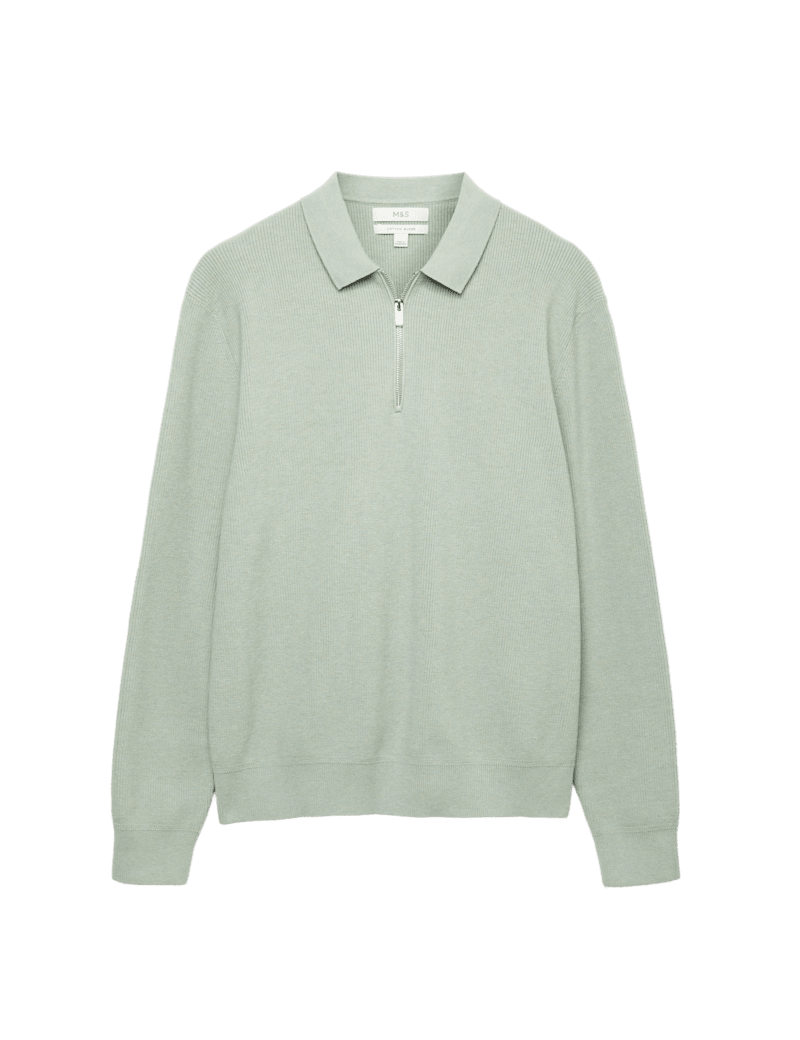This comfy cotton-blend long-sleeved knitted polo shirt is ideal for smart-casual occasions. Half-zip at the classic collared neck for a contemporary look and easy changing. The fine ribbed texture gives it an extra touch of refinement.