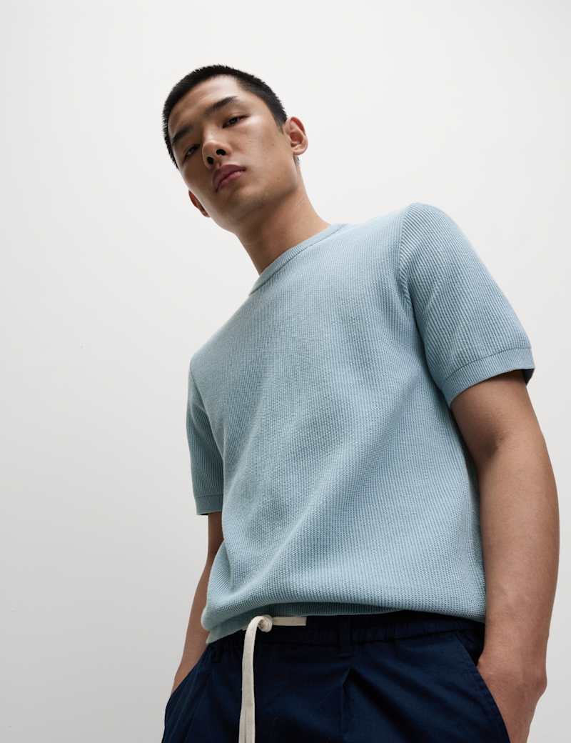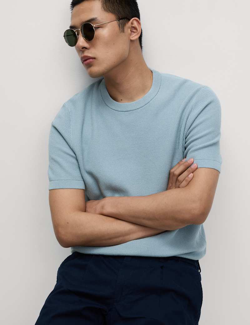 Refresh your casual staples with this cotton-rich t-shirt. Made to a comfy regular fit with a crew neck. The fabric features a textured weave for a subtle touch.