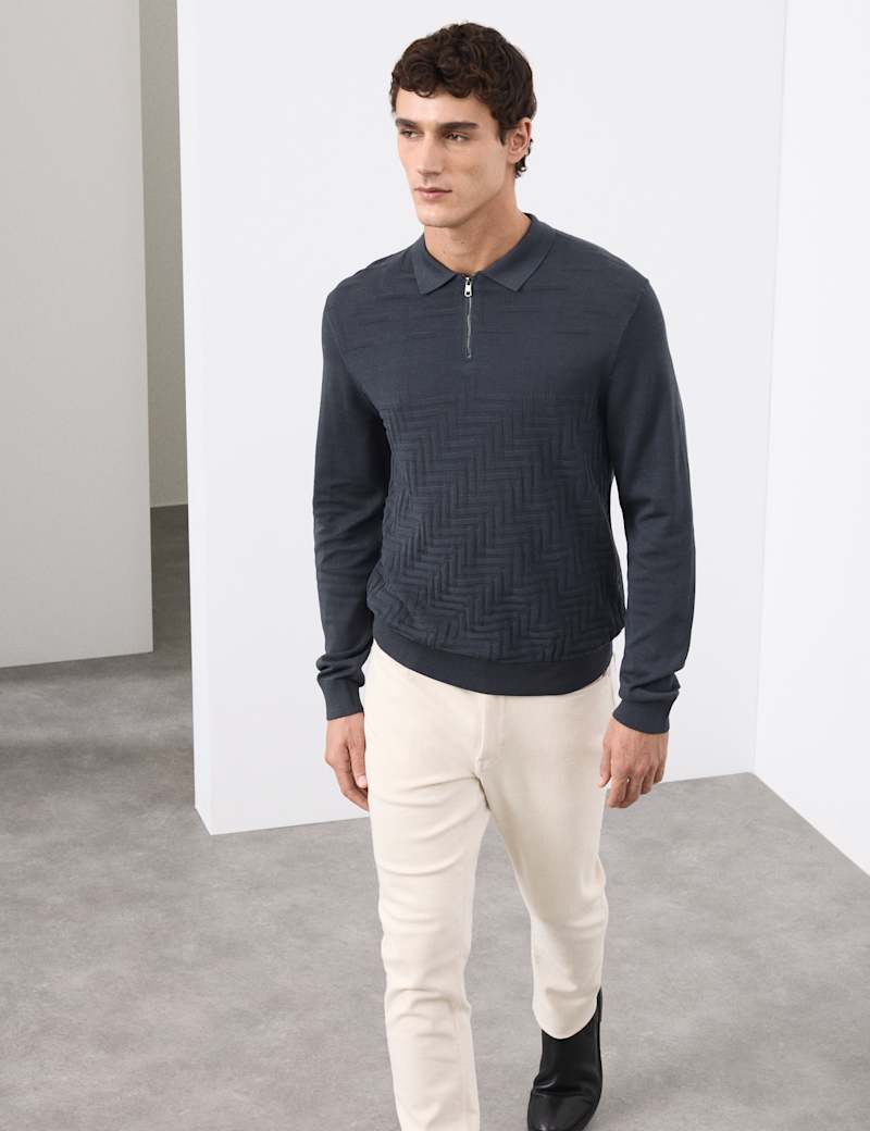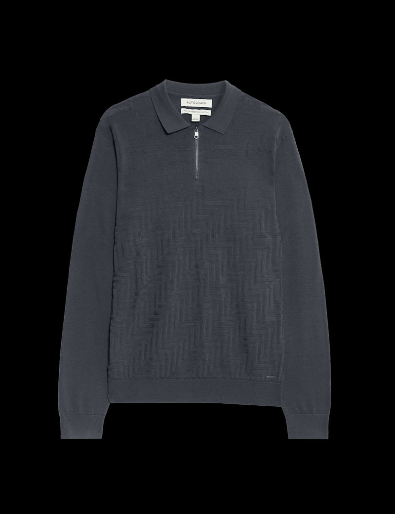 With its smooth mercerised finish, this pure cotton polo shirt from our Autograph collection is a refined take on the classic knit. It's crafted with long sleeves, a half-zip fastening and a smart polo collar. A stylish geometric pattern is knitted into the lower half.