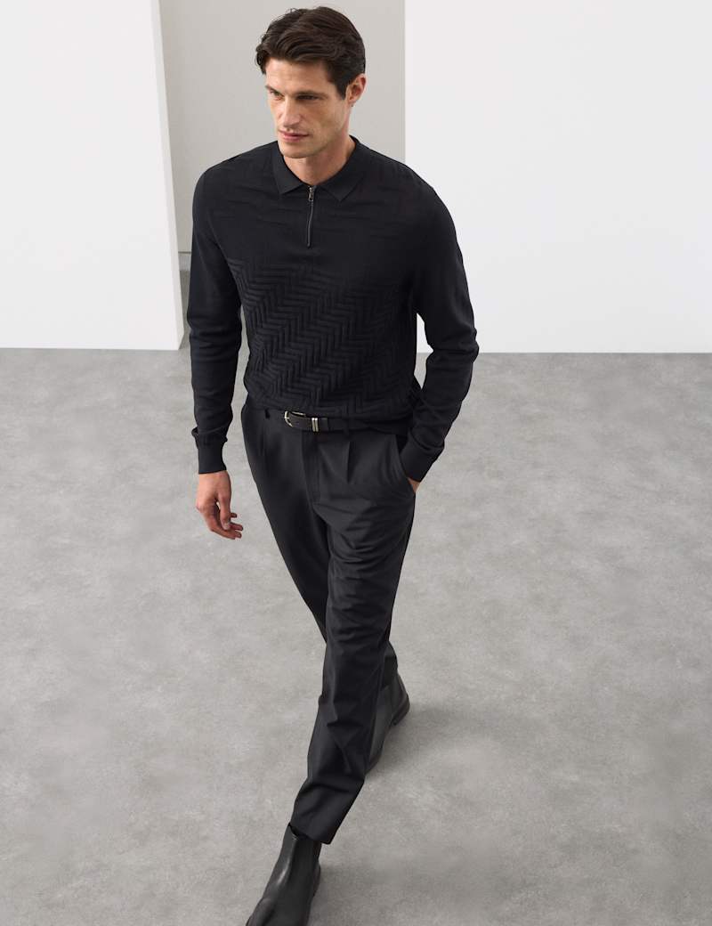 With its smooth mercerised finish, this pure cotton polo shirt from our Autograph collection is a refined take on the classic knit. It's crafted with long sleeves, a half-zip fastening and a smart polo collar. A stylish geometric pattern is knitted into the lower half.