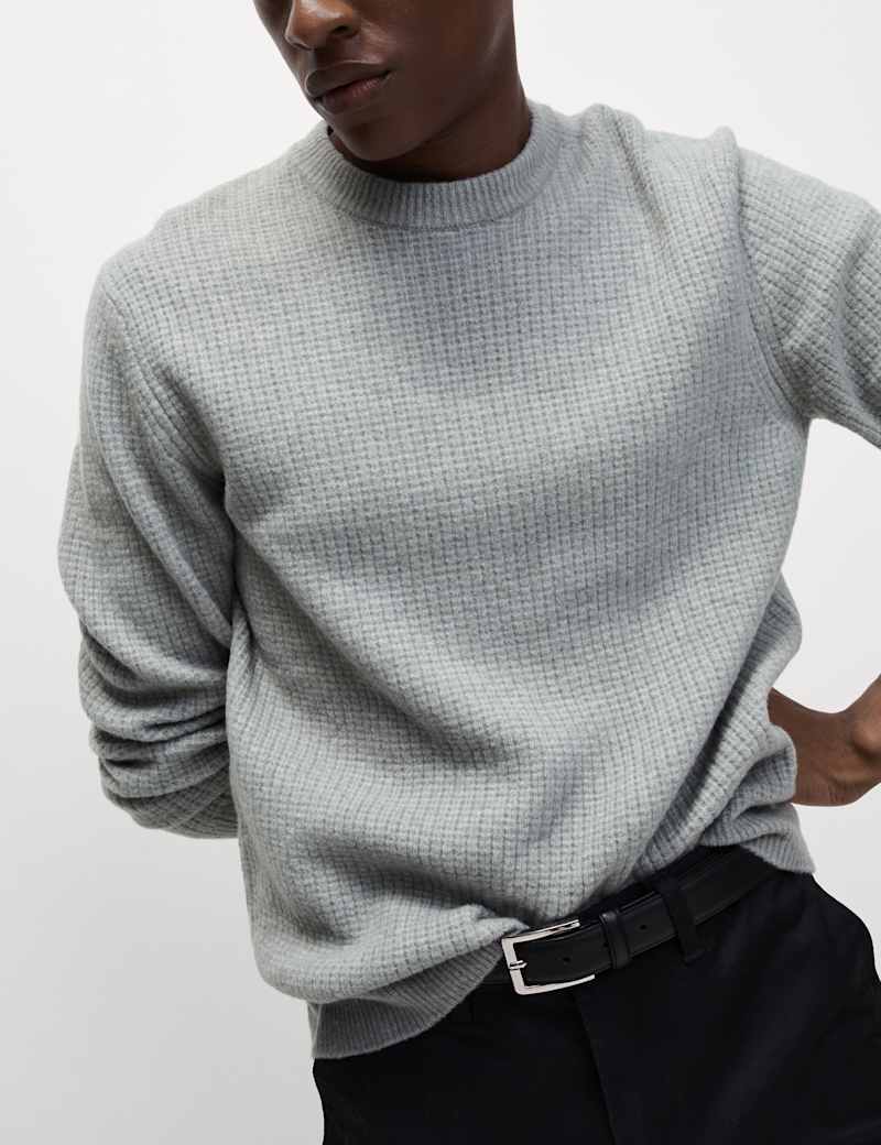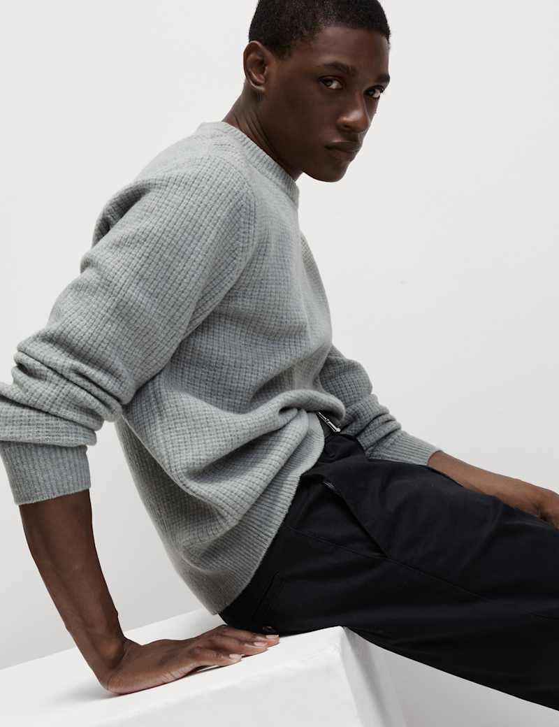 This cosy crew neck jumper is made from yarn that's blended with a touch of wool for a warm and luxurious feel. Added stretch in the fabric ensures you have extra comfort and easy movement. The ribbed hem, neck and cuffs ensure a snug fit and swift, easy changes. It's great for layering on cooler days.