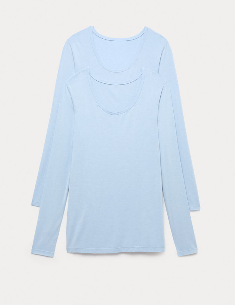 Beat the chill with these Heatgen™ thermal shirt tops. Made with our innovative heat-retaining fabric that feels gloriously soft against your skin, they feature a scoop neckline and long sleeves. The added stretch ensures a snug, flexible fit that's perfect for layering as a baselayer, while the light warmth rating provides just the right level of cosiness. Comes in a convenient pack of two.