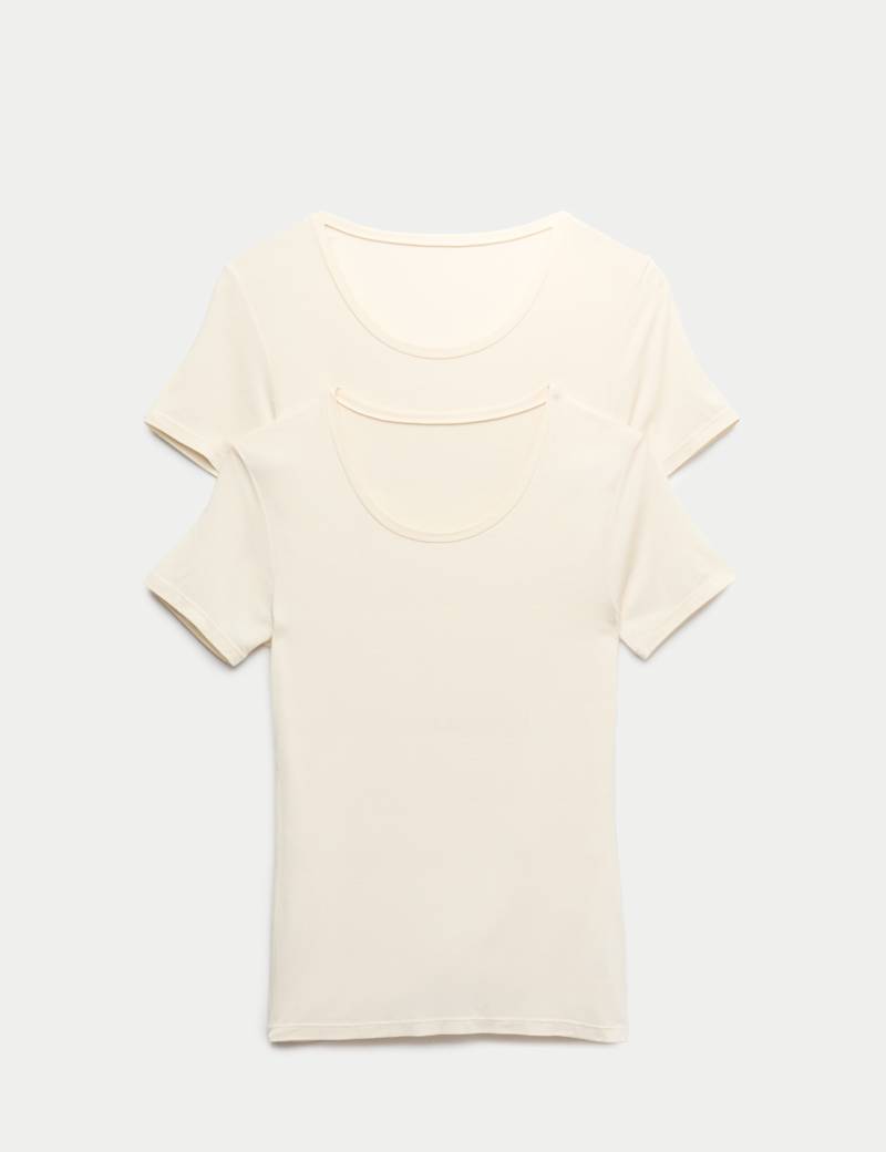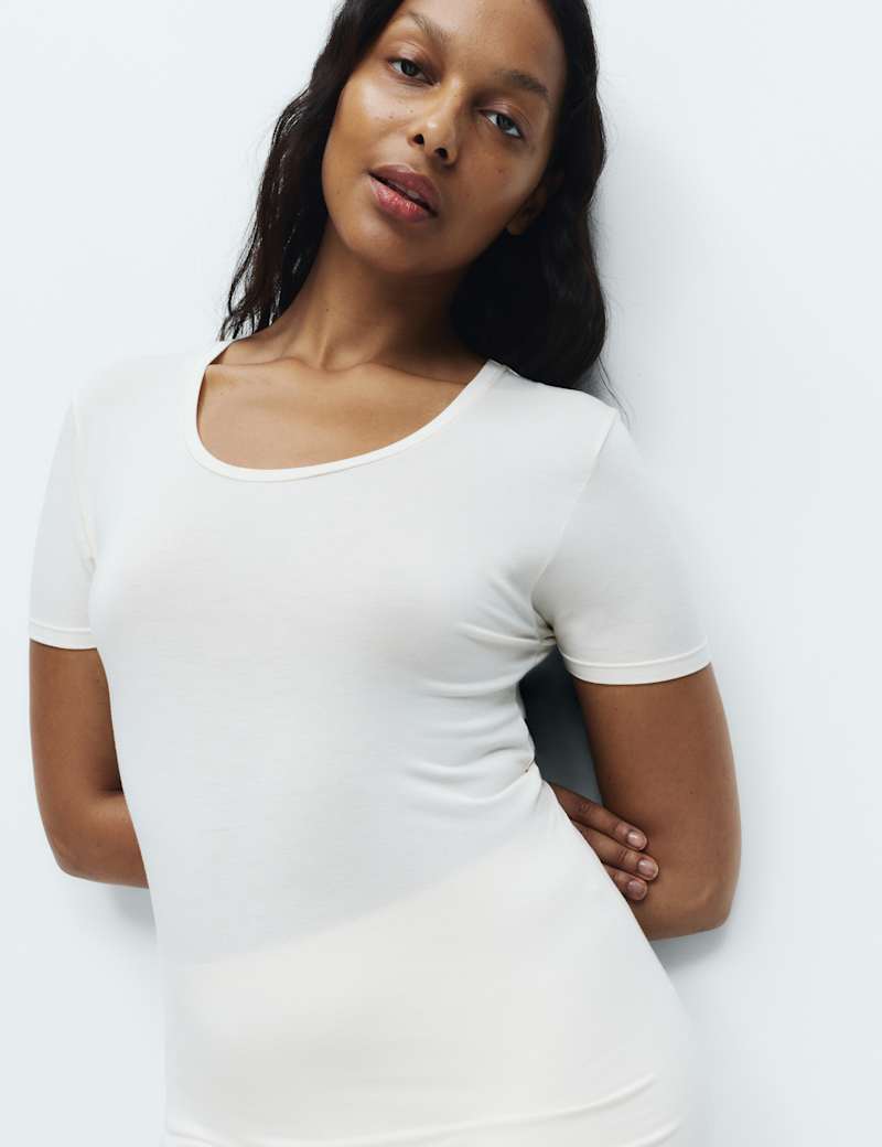 These short-sleeved thermal tops keep you cosy as the temperature drops. Made from a luxuriously soft, stretchy fabric with innovative Heatgen™ technology, they trap body heat while remaining lightweight against your skin. The flattering scoop neckline adds a feminine touch, while the simple design makes them perfect for layering or wearing alone for light warmth throughout the day.
