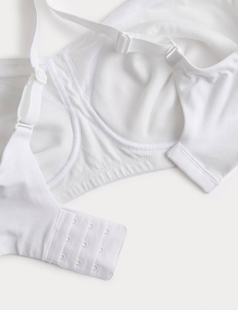This full-cup bra from M&S Collection is made from soft cotton fabric for breathable comfort. The wireless design creates a natural silhouette while delivering total support through thick straps and a supportive under-bust band. Extra side support and shaping elements provide excellent uplift, while a delicate lace trim adds a feminine touch. The hook and eye fastening ensures a secure fit, with sizes from B to H. Perfect for those seeking comfortable, supportive bras for everyday wear.