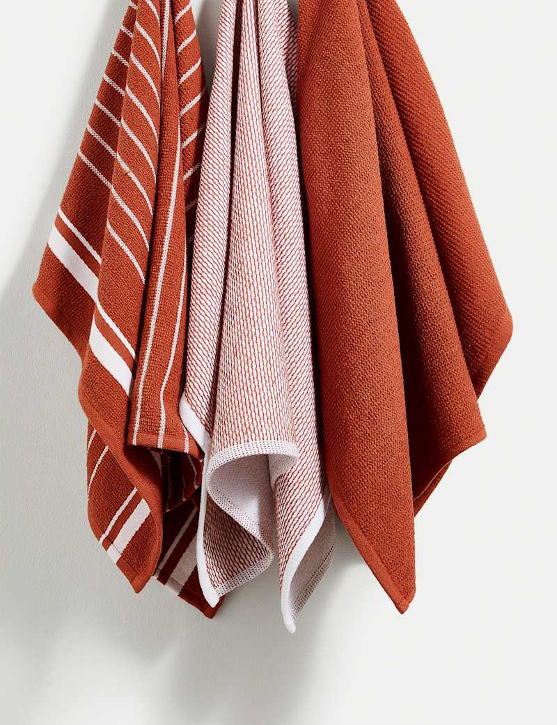 This three-pack of cotton-rich tea towels comes in a selection of designs €“ choose from plain, narrow stripes and bold stripes. Our antibacterial finish helps to keep them fresh for longer.