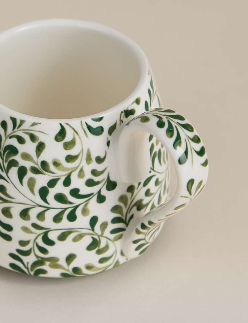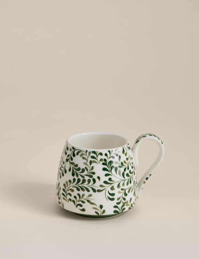 With its contemporary tapered shape, this stoneware mug is a sophisticated choice. An all-over floral design creates an eye-catching look. You can wash this piece in your dishwasher.