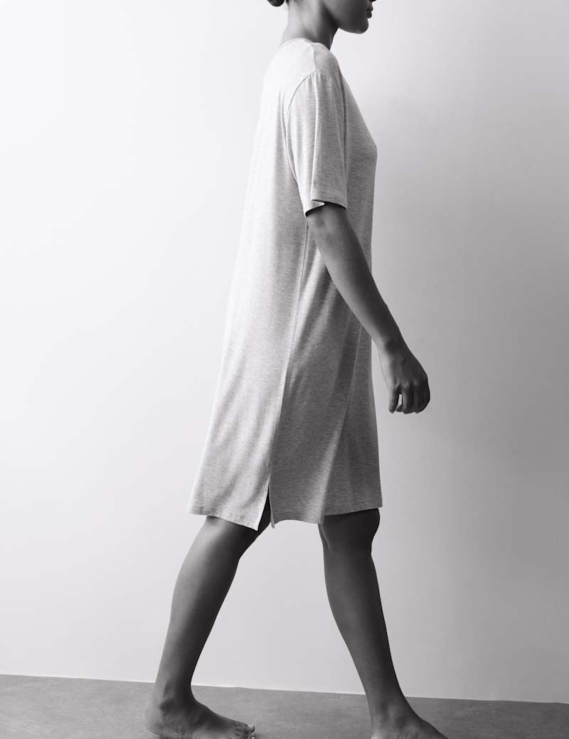 Bring effortless simplicity to bedtime with this short-sleeved mini nightshirt from our Autograph collection. It's cut to a regular fit from soft fabric with added stretch so you can move comfortably in the night. Features a round neckline and a chest pocket.