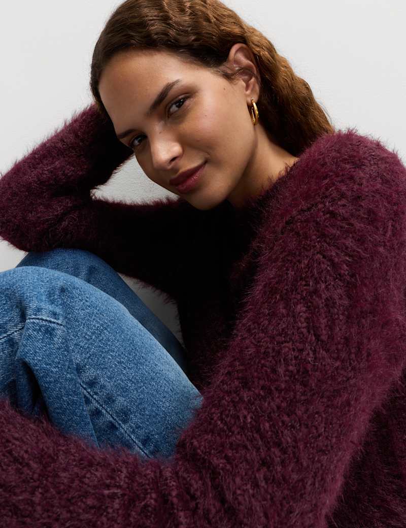 Welcome cooler days with this gorgeously textured jumper, knitted from luxuriously fluffy yarn. It's designed in a comfy regular fit, with a timeless crew neckline. This delightfully cosy piece is complete with ribbed trims for a neat finish.