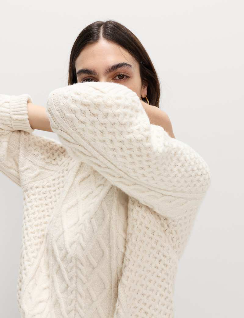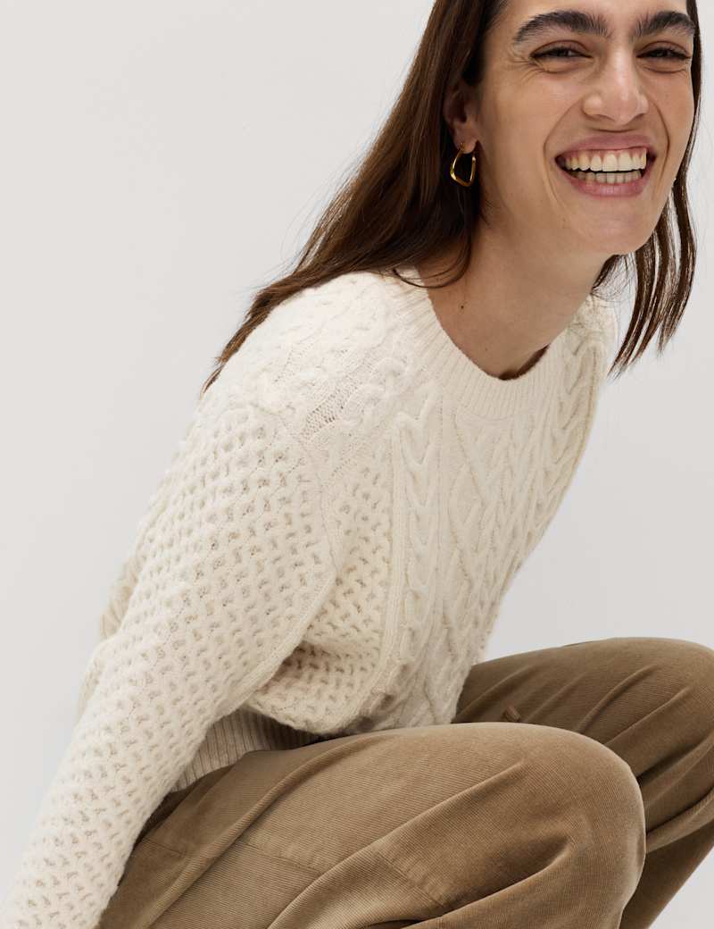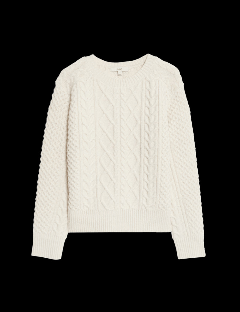This jumper features a timeless cable knit for a touch of texture. It's designed in an easy regular fit, with added stretch for comfort and a little cotton for softness. A ribbed trim on the crew neckline, cuffs and hem adds a neat finish.