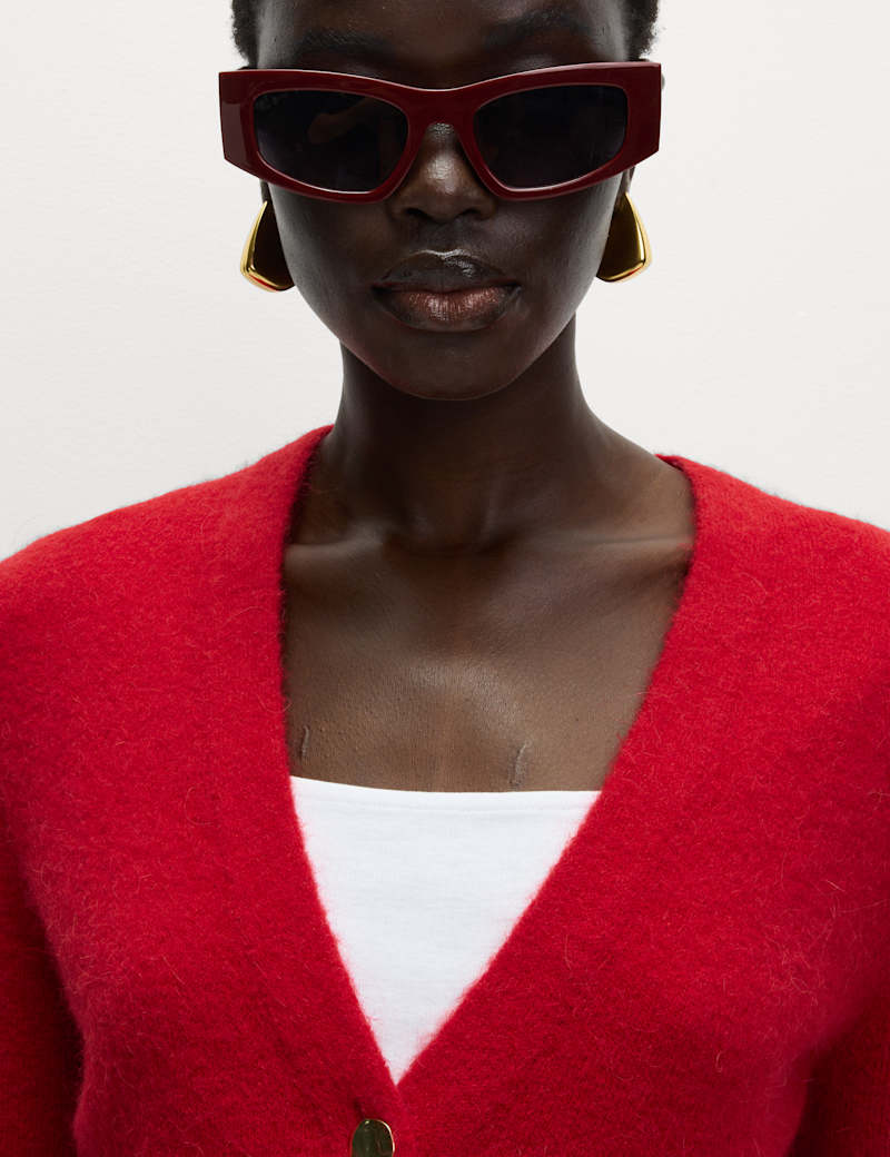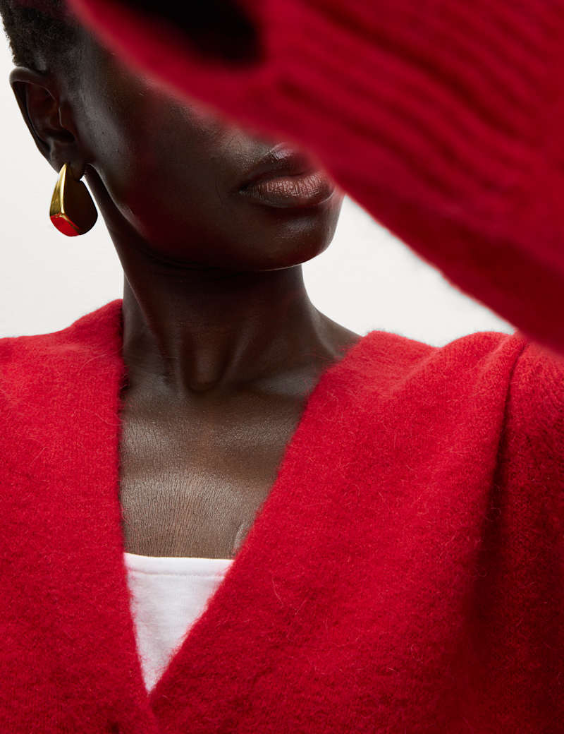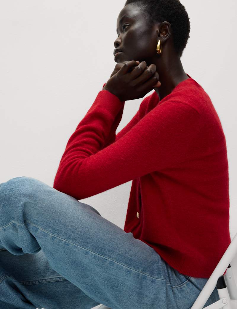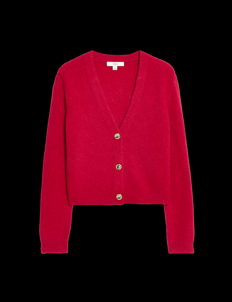 This elegant cardigan is crafted with alpaca and wool for a luxurious feel. It's designed in a regular fit, with a cropped length, a v-neckline and a smart button-through front. Ribbed trims on the cuffs and hem create a neat finish.
