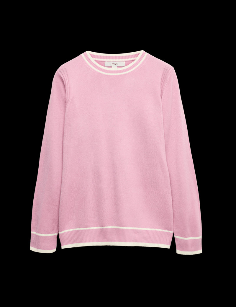 This jumper is crafted from supersoft yarn for a cosy feel. It's designed in an easy regular fit, with a timeless crew neckline. The textured knit on the shoulders and contrast tipping add interest, while ribbed trims deliver a neat finish.