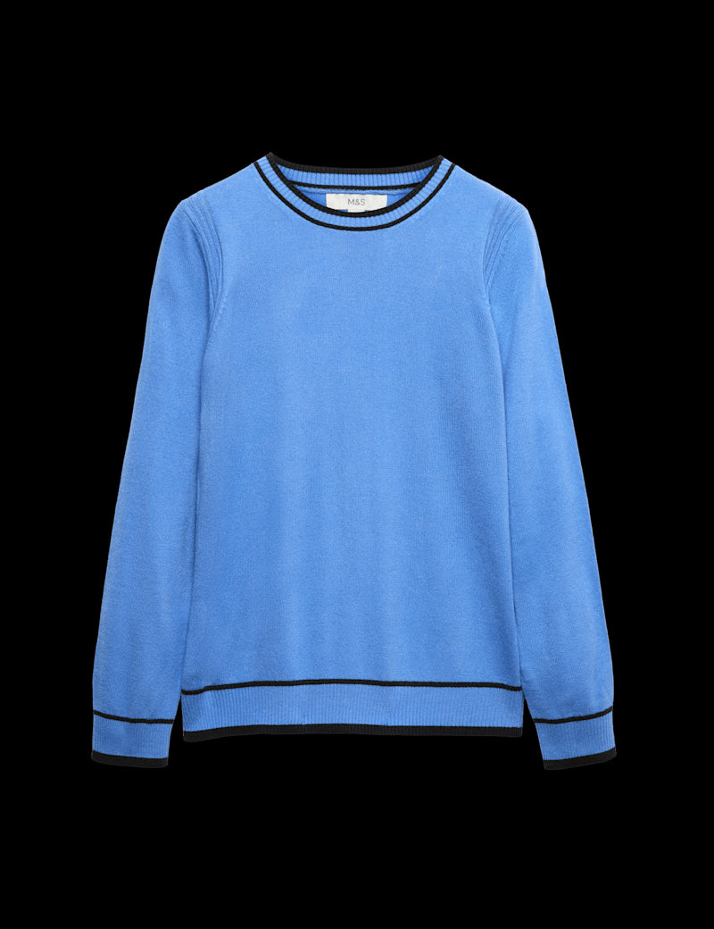 This jumper is crafted from supersoft yarn for a cosy feel. It's designed in an easy regular fit, with a timeless crew neckline. The textured knit on the shoulders and contrast tipping add interest, while ribbed trims deliver a neat finish.