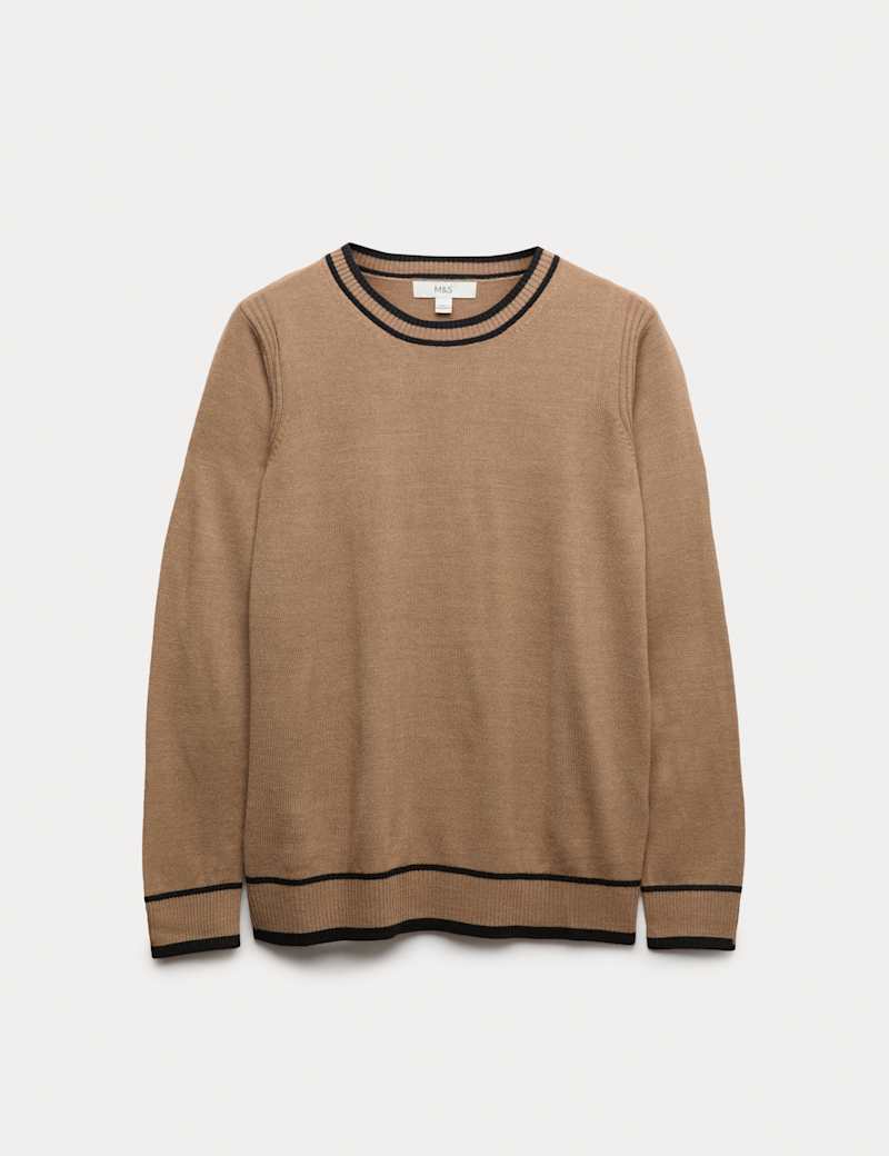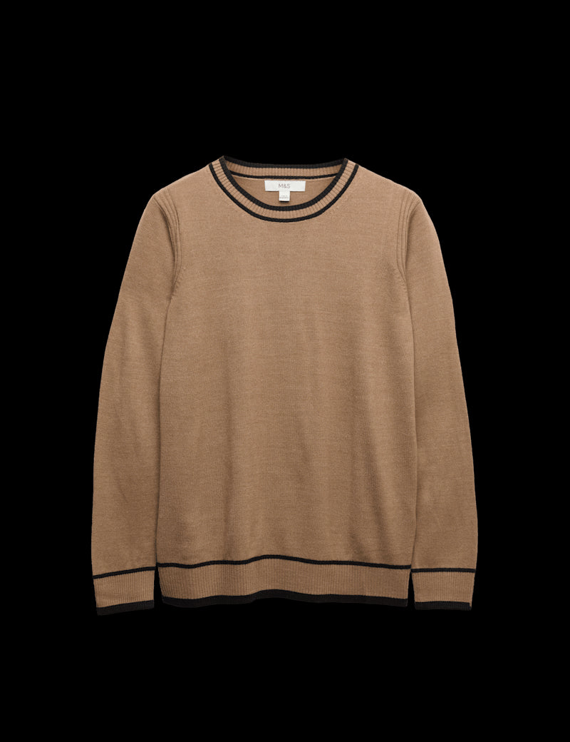 This jumper is crafted from supersoft yarn for a cosy feel. It's designed in an easy regular fit, with a timeless crew neckline. The textured knit on the shoulders and contrast tipping add interest, while ribbed trims deliver a neat finish.