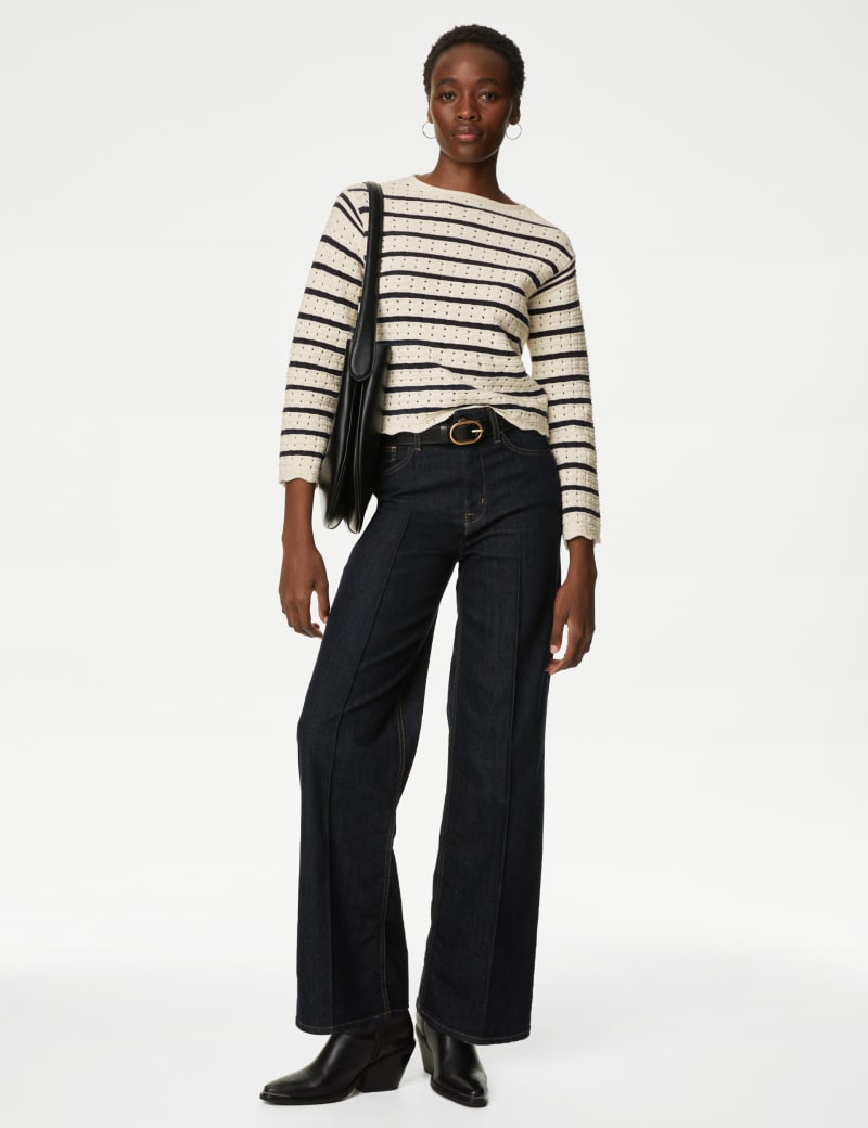 Cotton Rich Striped Knitted Crew Neck Jumper