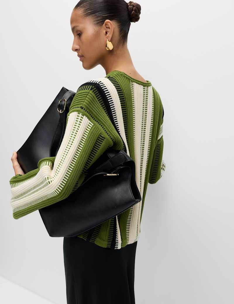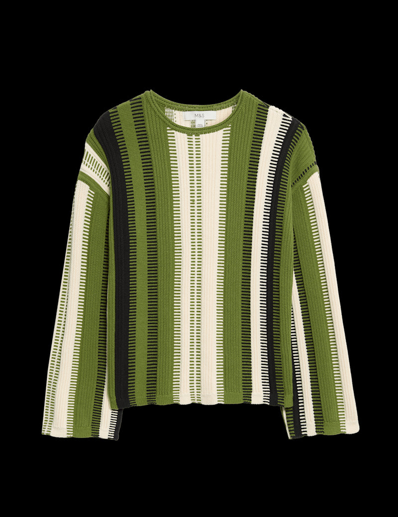 This cotton-rich jumper is a stylish choice for cooler days. It's designed in a regular fit, with a ribbed texture for optimal cosiness. The throw-on-and-go design features slightly wider sleeves and dropped shoulders for an easygoing, sporty look. An all-over stripe pattern ensures an eye-catching finish.