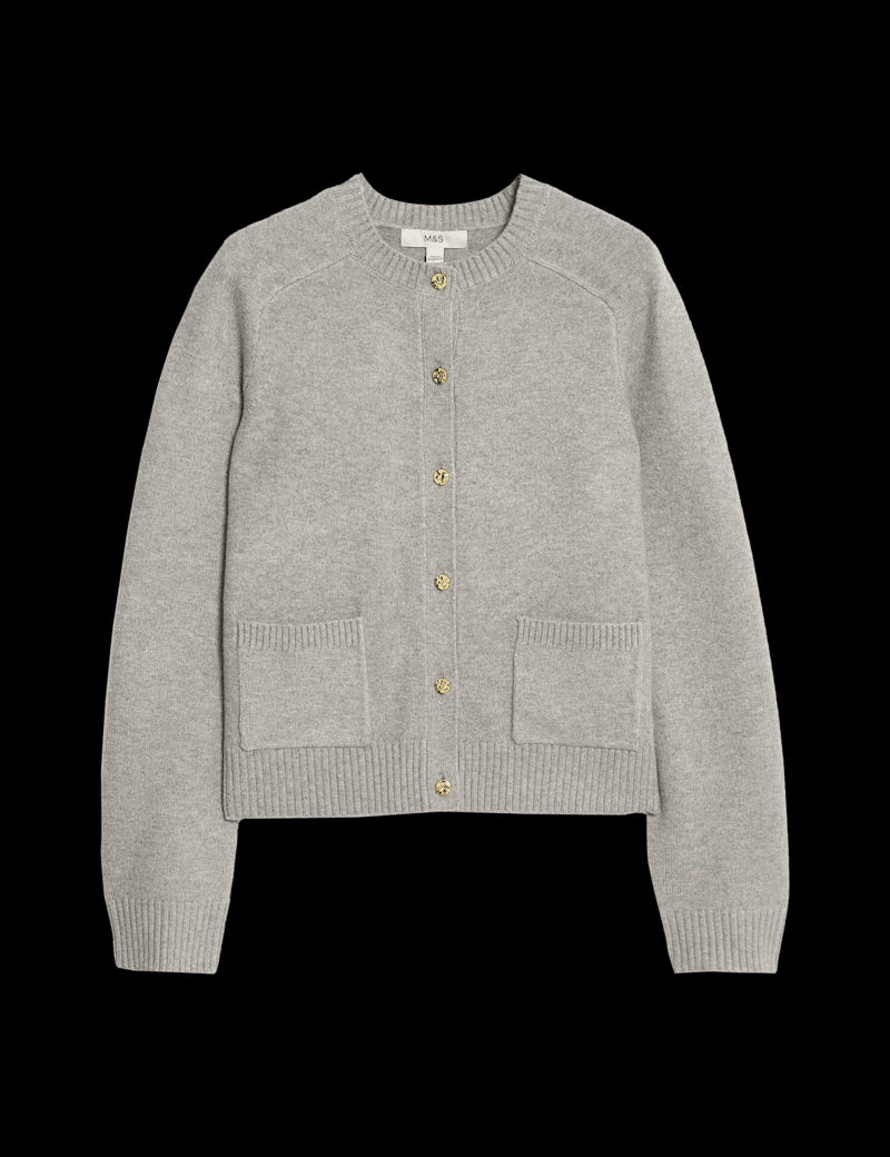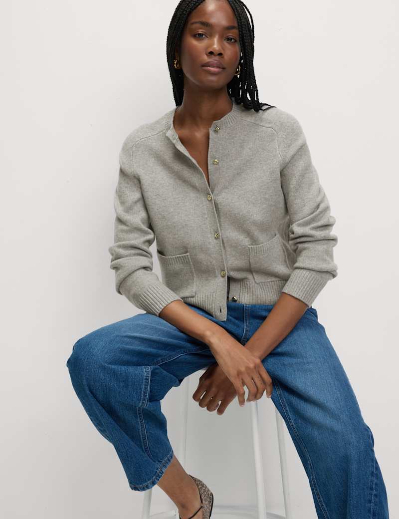 This cropped cardigan is a stylish update on a wardrobe staple. The design is crafted from lightweight Air-Yarn, enhanced with added stretch for comfort. The two pockets on the front are practical and chic, while a regular fit and crew neck provide classic features. Polished gold-tone buttons on the front add luxurious detailing.