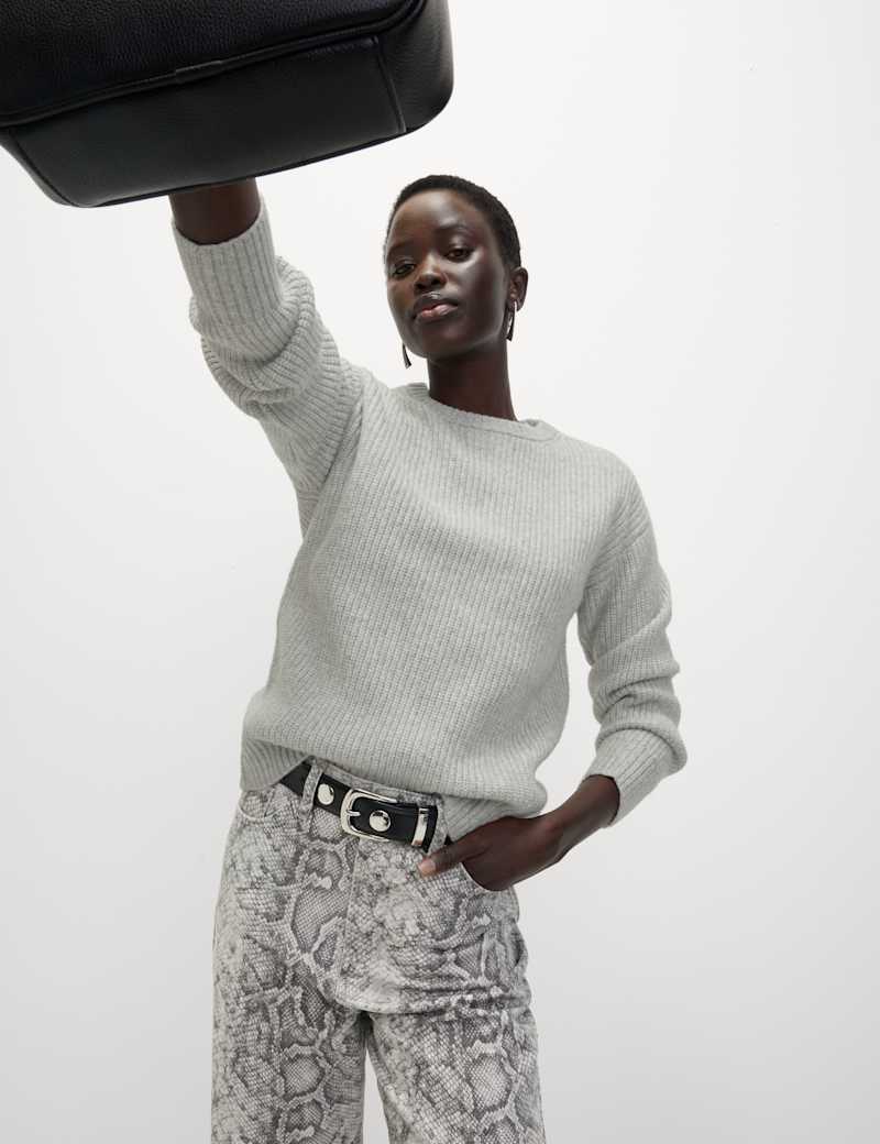 Enjoy luxurious softness with this jumper, knitted from ultra-fine cloud-yarn. It's designed in a comfy regular fit, with a timeless crew neckline and casually dropped shoulders to the long sleeves. Chunky ribbed stitching enhances the cosy look and feel, while classic ribbed trims provide a neat finish.