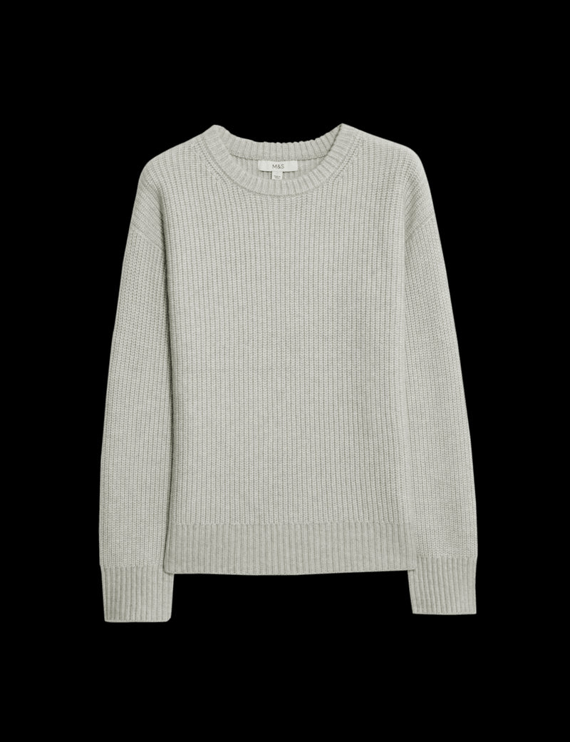 Cloud-Yarn Ribbed Crew Neck Jumper