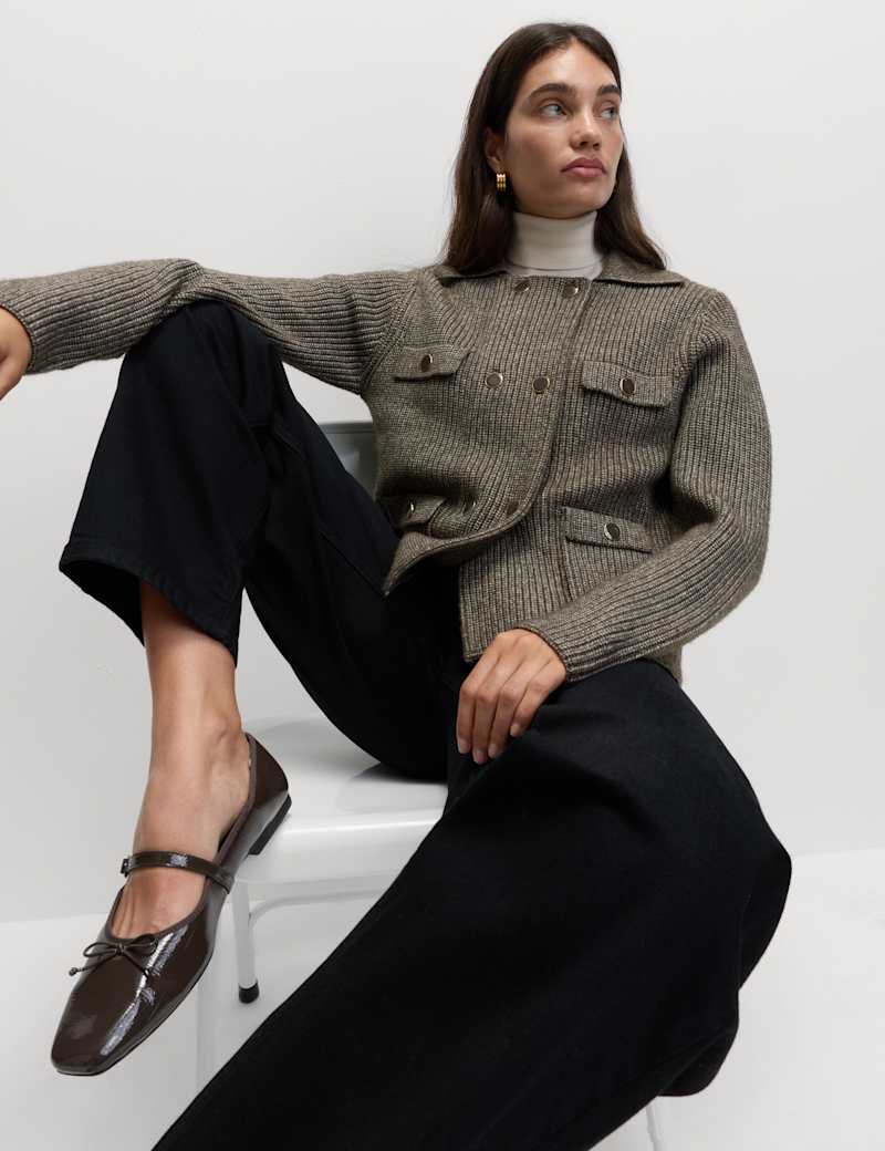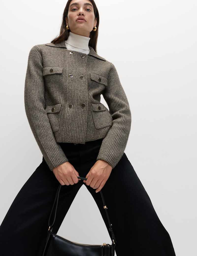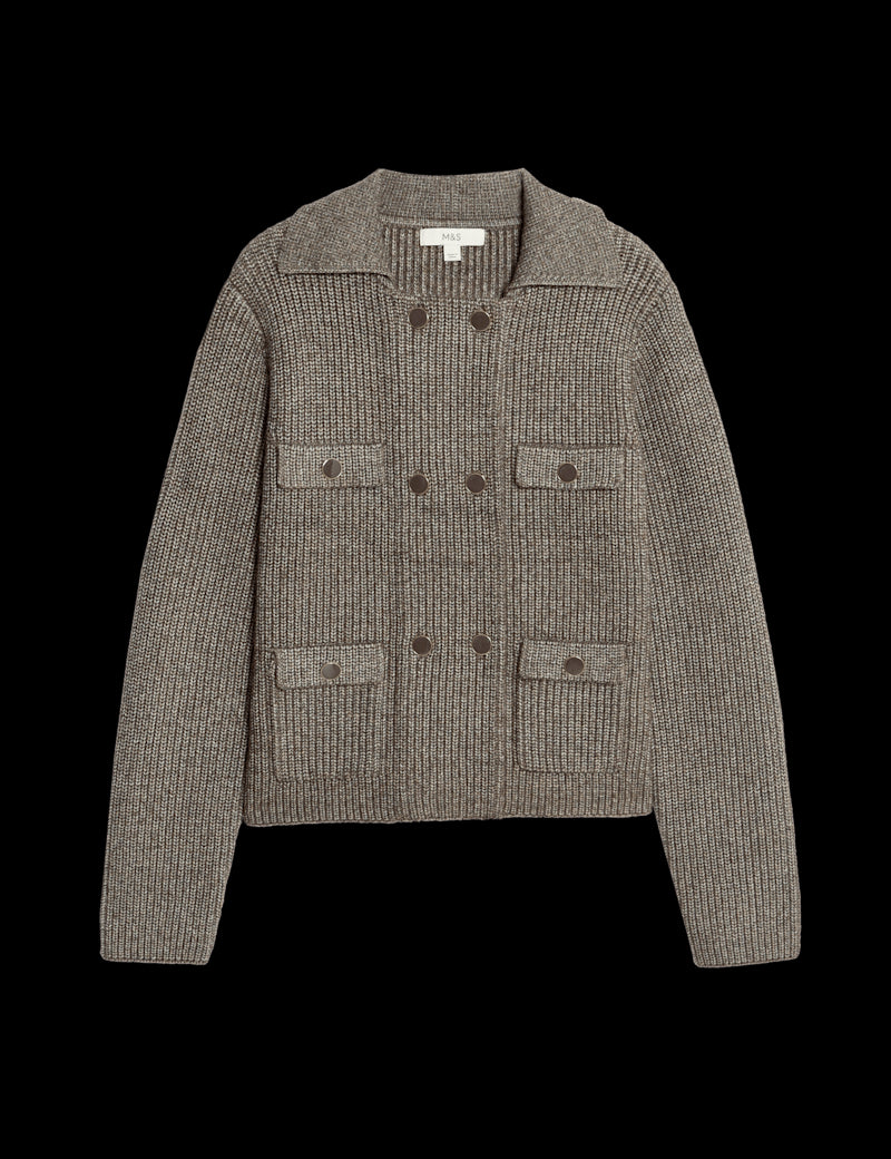 Beautifully soft, this knitted jacket is crafted from our cloud yarn for a premium feel. Comfy regular fit, with a smart collared neckline and double-breasted button front. Four pockets – two on the chest and two on the hips – add a cool utility touch.