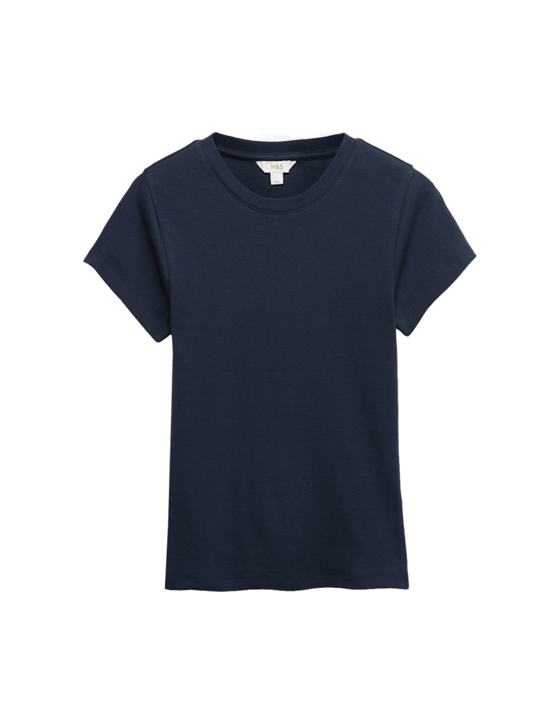 This t-shirt is crafted from premium cotton-rich fabric to give your casual wardrobe a luxurious touch. It's designed in a flattering slim fit, with added stretch for extra comfort. A timeless crew neckline and short sleeves complete the stylish look.