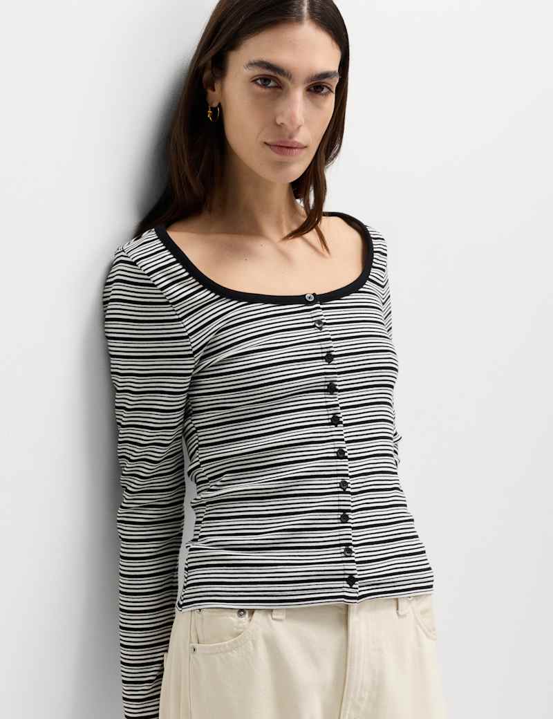 This cotton-rich Henley top is a versatile piece for your casual wardrobe. Regular fit, with a scoop neckline and added stretch for comfort. Button-through fastening provides a casual finish.