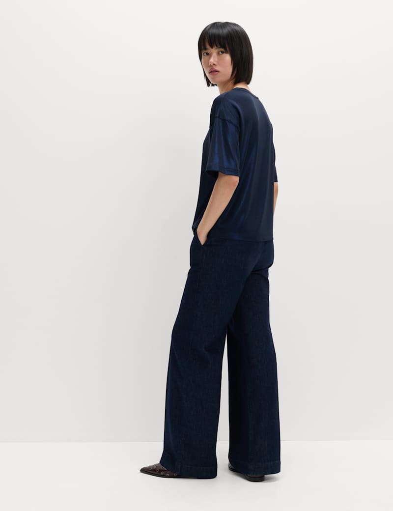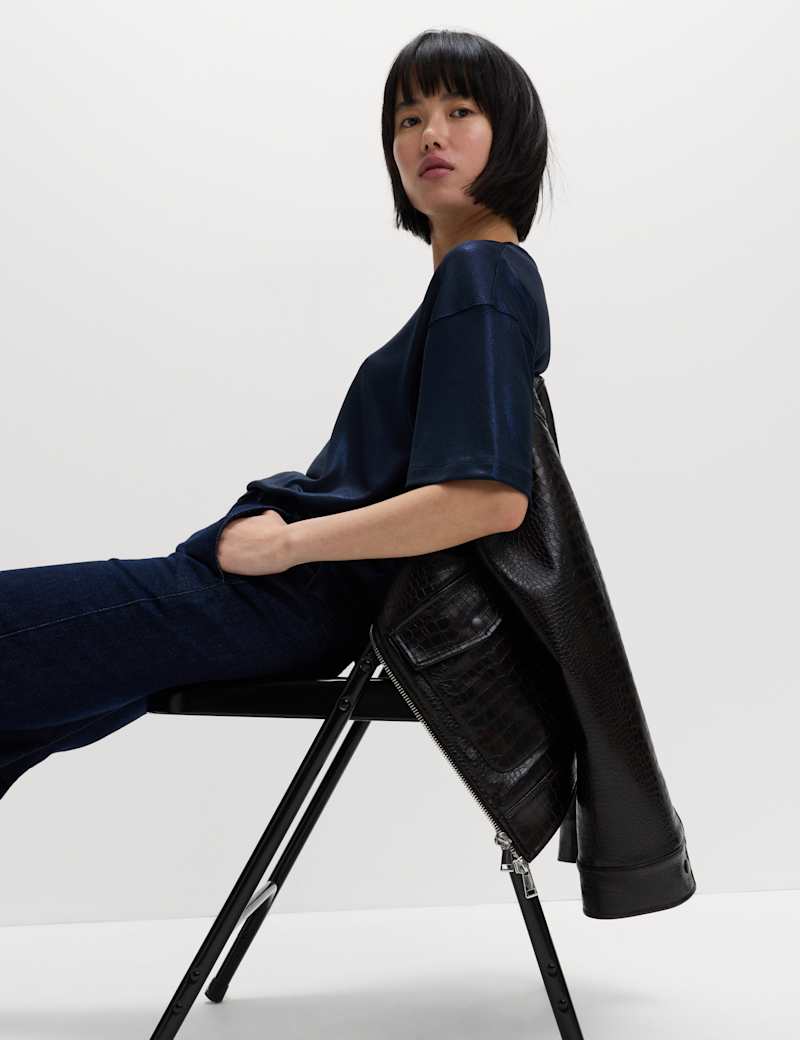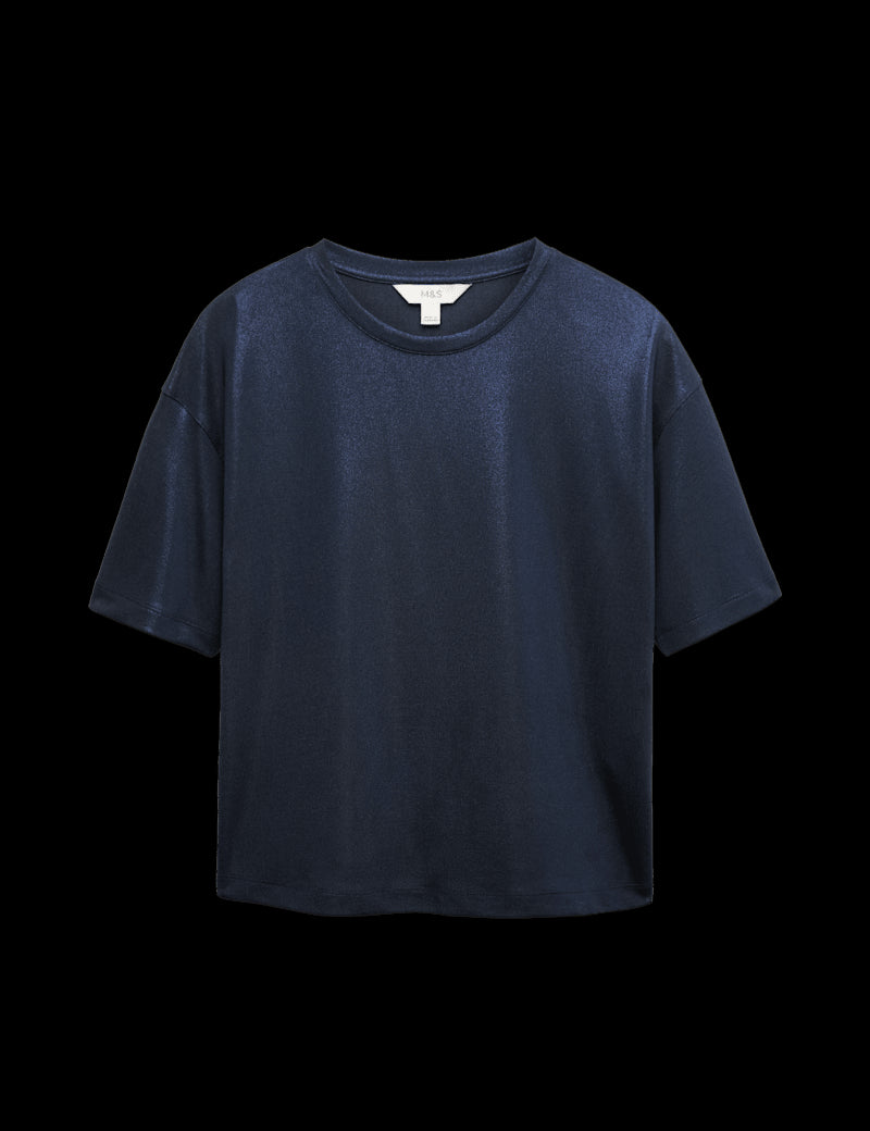 This sparkly t-shirt is made with metallic shimmer for a party-ready look. It's crafted in a regular fit, with short sleeves and a contemporary boxy silhouette. The crew neckline offers a neat finish.