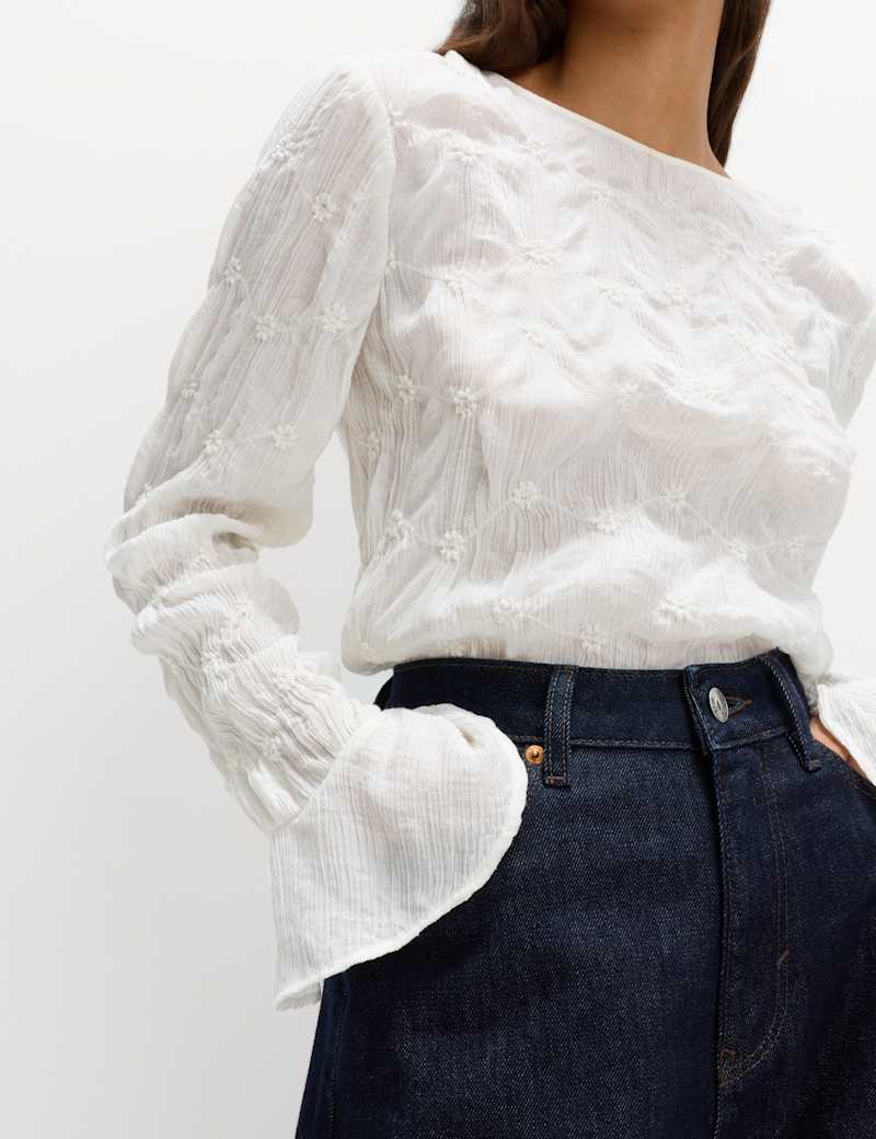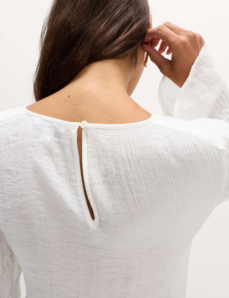 With its pretty lace embellishment, this textured top adds femininity to your outfit. It's cut in a regular fit, with a neat crew neckline. A button fastening at the back of the neck makes it easy to put on.