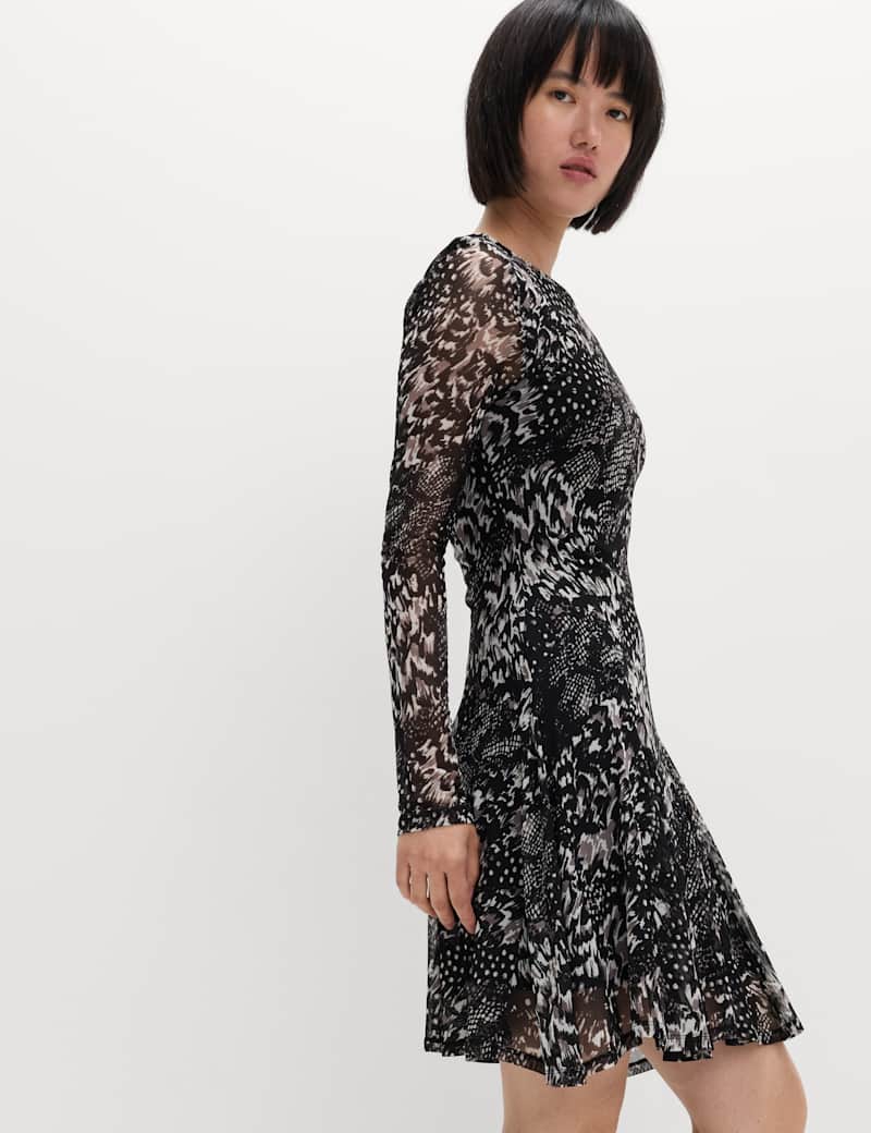 Mesh Printed Mini Skater Dress