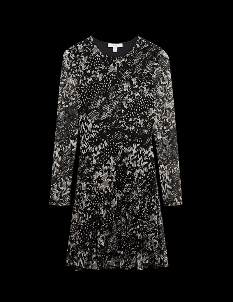 This printed mesh skater dress is a stylish choice for day or night. It's designed in a regular fit, with a flattering fit-and-flare skater shape. The mini-length skirt features soft pleats that are made for dancing.