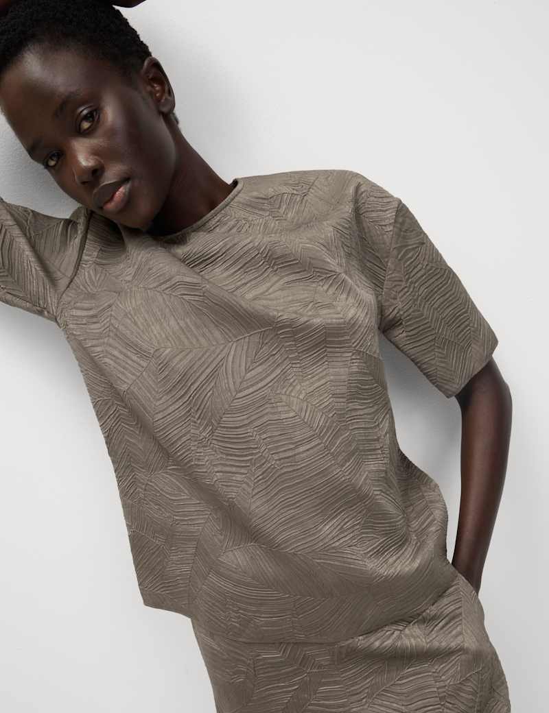 Bring subtle detail to your outfit with this textured t-shirt featuring a tonal embossed design. It's cut in a regular fit, with a neat round neckline and airy short sleeves.