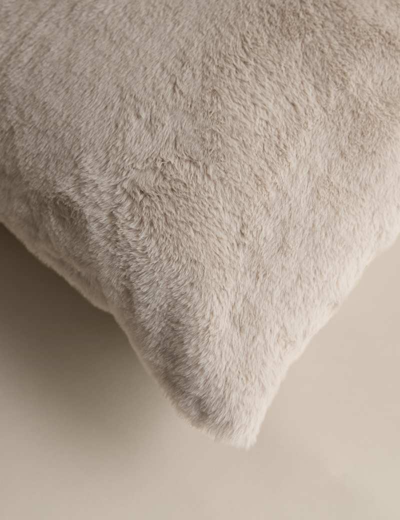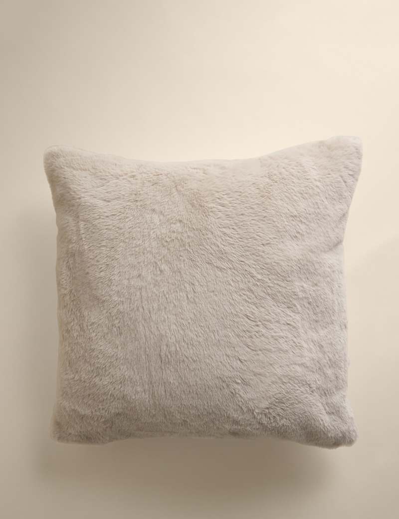 Add a cosy touch to beds, chairs or sofas with our supersoft faux fur cushion. It's made in a go-with-everything square shape. This piece's fluffy front is ideal to sink into after a long day, and contrasts with a smooth back.