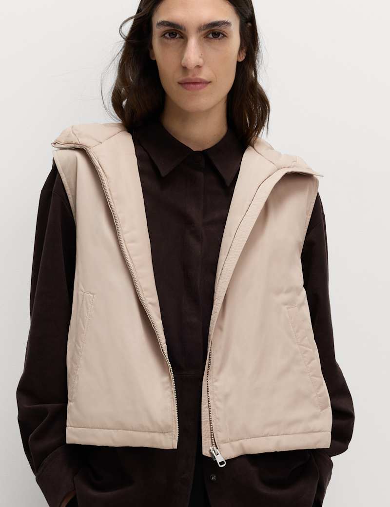 Stay cosy in this versatile gilet featuring with a lightly padded design for extra warmth. Ideal for layering, the design has a regular fit with a modern cropped length and a drawstring hooded neck. The zip-up front ensures you stay snug, while two front pockets are ideal for carrying essentials. Our water-repellent Stormwear™ technology helps to keep you dry in light showers.