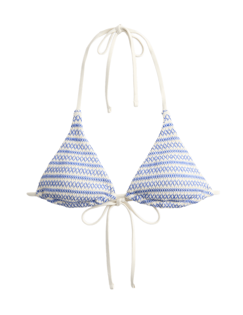 This triangle bikini top features a smocked texture for a flattering poolside look. The halterneck ties and back fastening can be adjusted to suit your shape. Removable padding in the cups offers extra support.