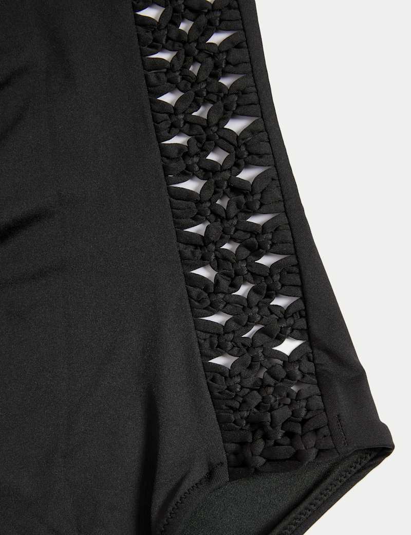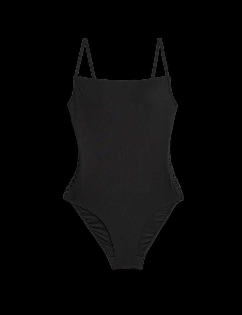 Macrame detailing at the sides adds a stylish touch to this swimsuit. It's designed in a regular fit, with a flattering square neckline and adjustable straps. The chlorine-resistant fabric ensures the piece lasts longer. It's complete with our Sun Smart UPF50+ technology to help protect against harmful UV rays.