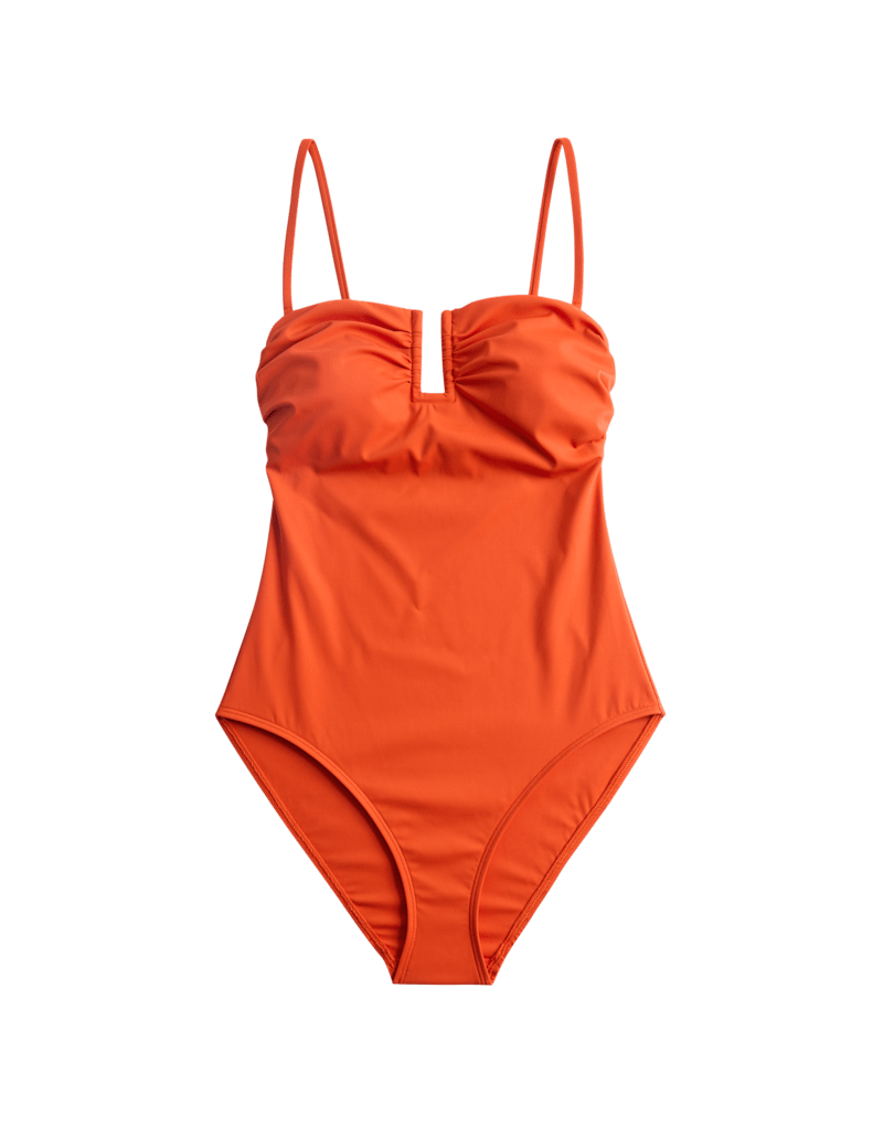 This swimsuit is a stylish choice for your next getaway. It's crafted in a regular fit, with removable straps and added stretch for comfort. The padded cups are non-wired for a natural shape. A u-shaped notch neckline adds a contemporary finish.