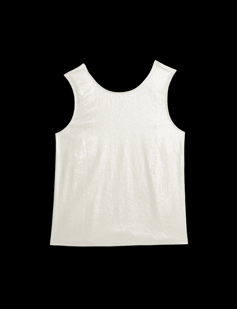 Made from linen-rich fabric with a foiled finish, this tank top combines a breezy, summer-ready feel with a glamorous touch of shimmer. This refined style is cut to a regular fit with a round neckline. A sleeveless, cross-back shape enhances its modern look.