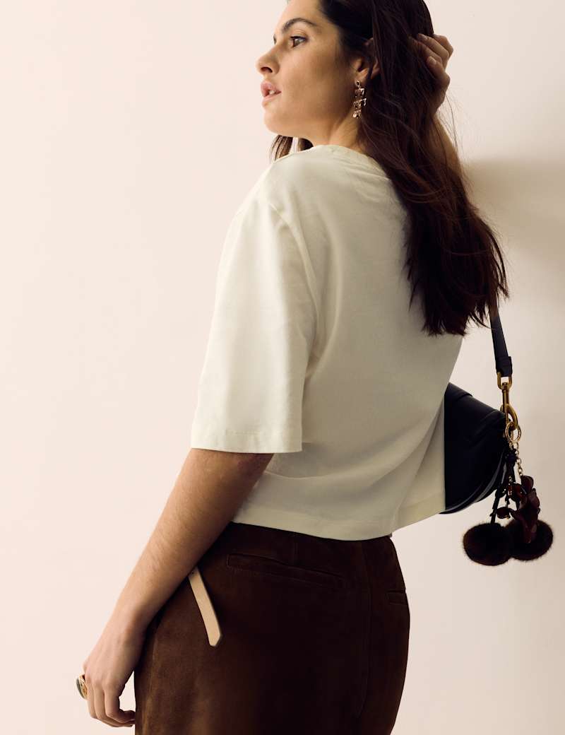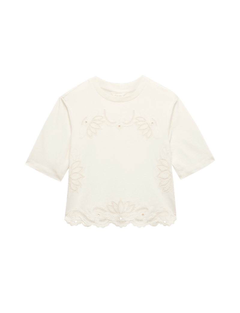 This jersey t-shirt from our Per Una collection will bring a statement touch to your outfits. It's crafted in a regular fit from pure cotton for a breathable feel, with a classic crew neckline and short sleeves. Lavish floral embroidery and a scalloped hem deliver a bold, boho-inspired look.