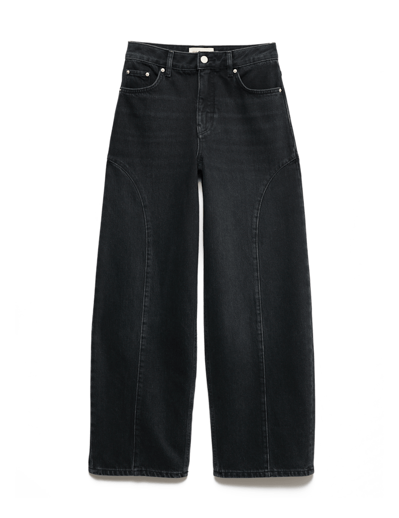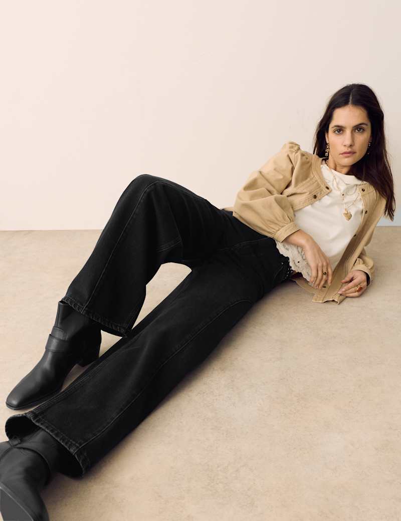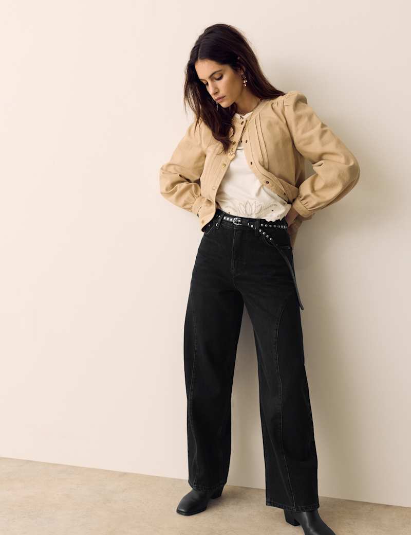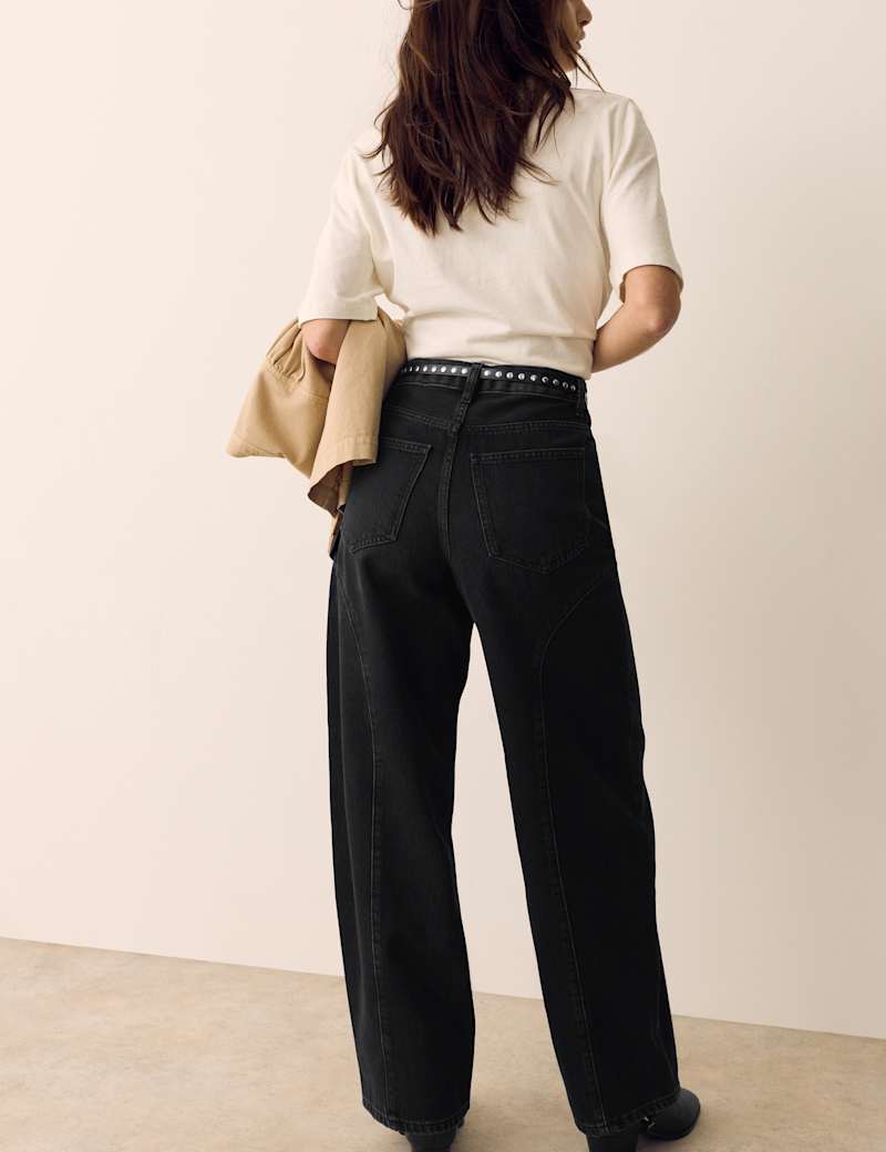 These jeans from our Per Una collection bring a subtle Western-inspired edge to everyday denim. They’re cut to a flattering high-waisted shape with contemporary wide, tapered legs. Curved yoke-style stitching through the thigh adds a distinctive, heritage feel and enhances the silhouette. Crafted from cotton-lyocell denim with no stretch, they have a rigid handle for an authentic look. Finished with a button-and-zip fastening and classic five-pocket styling.