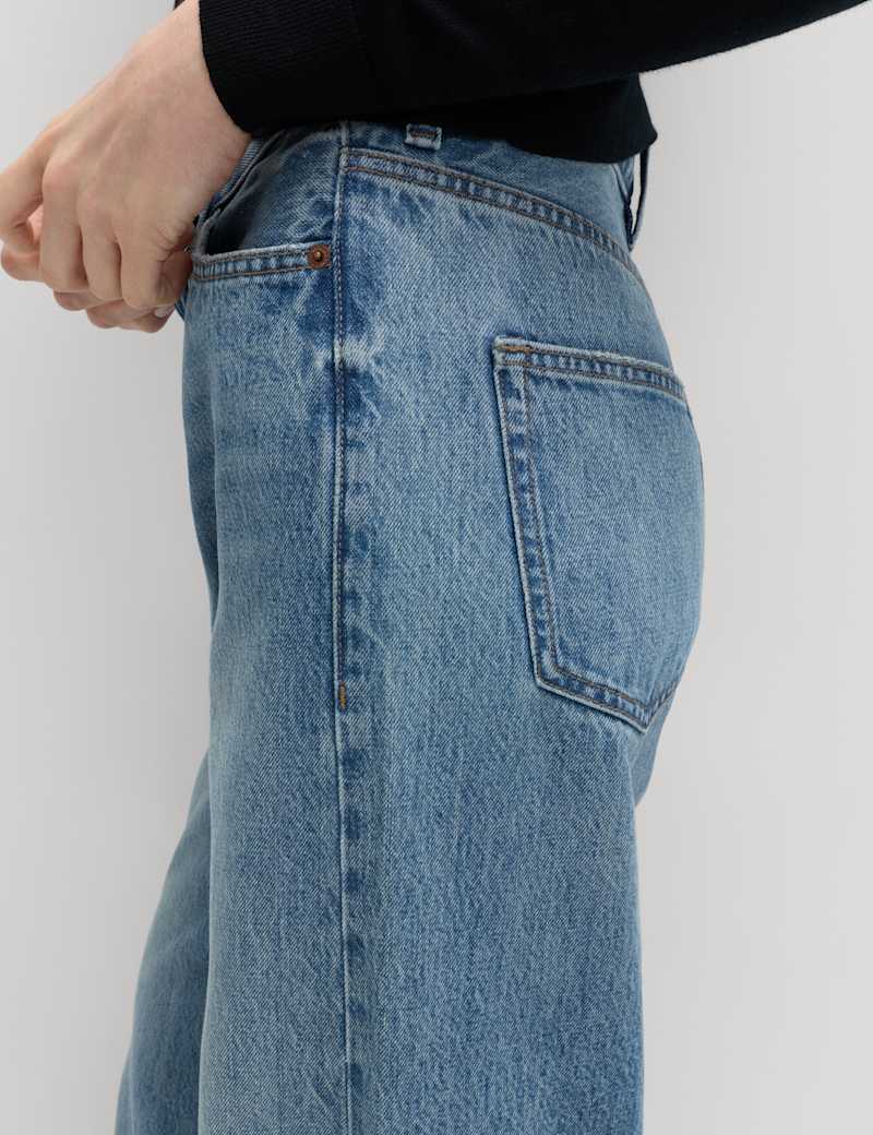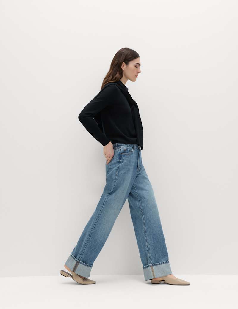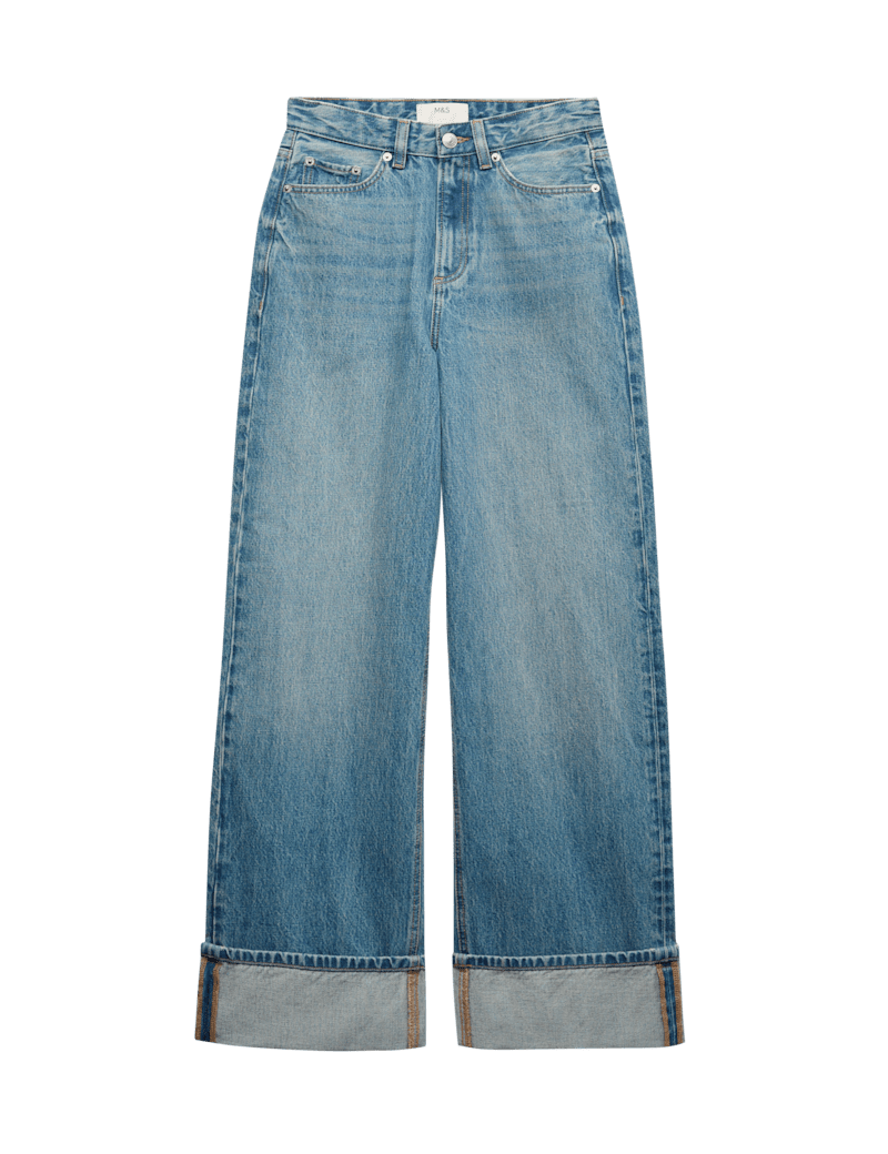 These wide-leg jeans are a stylish pick for casual days. They're designed to fit high on the waist, with a flattering turn-up hem. Made from pure cotton denim for a soft, authentic feel.