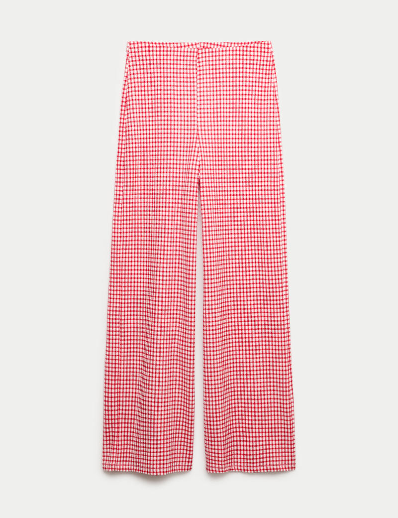 Gingham Elasticated Waist Wide Leg Trousers
