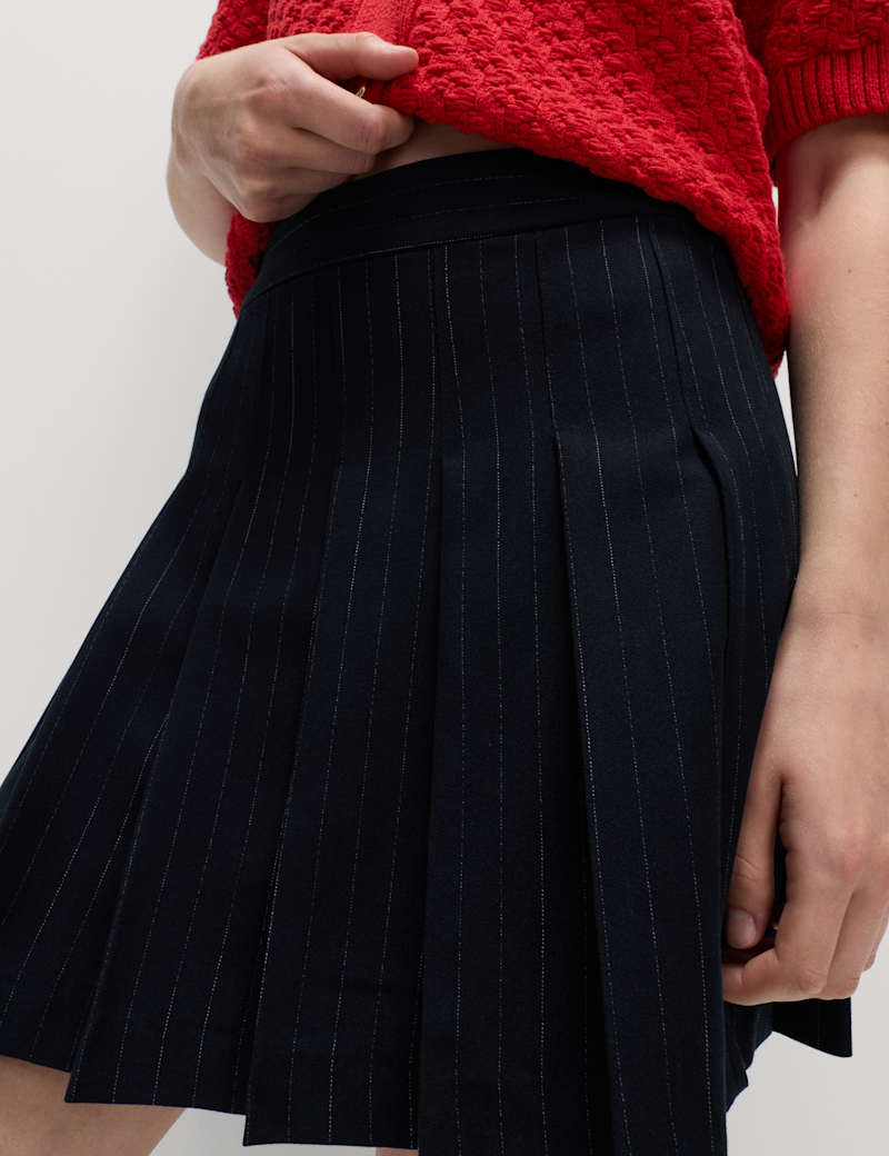 Take your 9-5 look up a notch with this pleated mini skirt. It's designed with a flattering high waist and is made from a woven fabric with added stretch for comfort. Crisp pinstripes and a zip fastening ensure a neat finish.