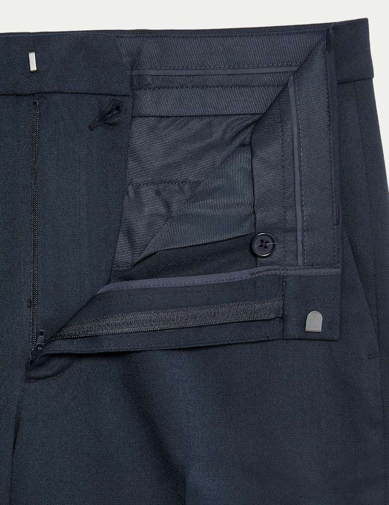Create a classic smart look with these smart twill trousers. They're made to a regular fit, with a flat front and a discreet hook bar and zip fastening for a neat silhouette. Added stretch in the fabric and a comfort waistband ensure you can move freely all day long. Kick tape detailing helps to prevent scuffing.