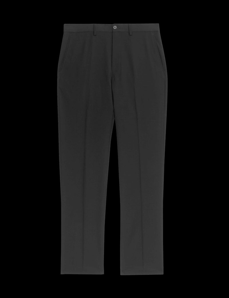 Make these wool-blend trousers the next addition to your wardrobe of smart staples. They're made to a regular fit and side-angled slip pockets. A concealed button supports the classic button and zip fastening, while pressed creases on the legs give your outfit a sharp look.